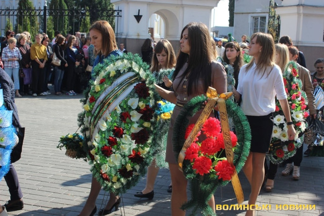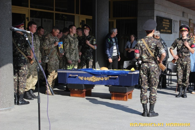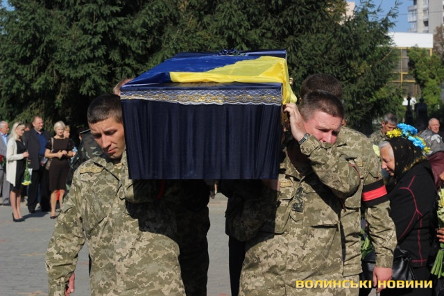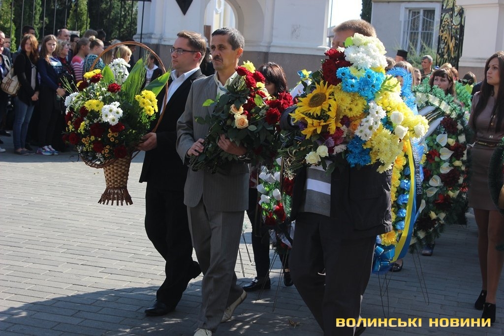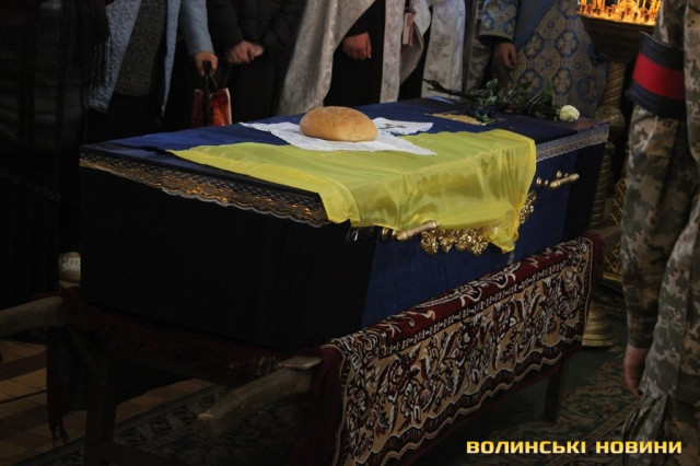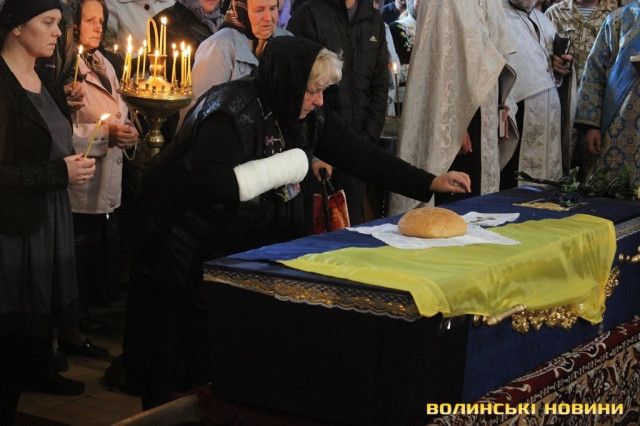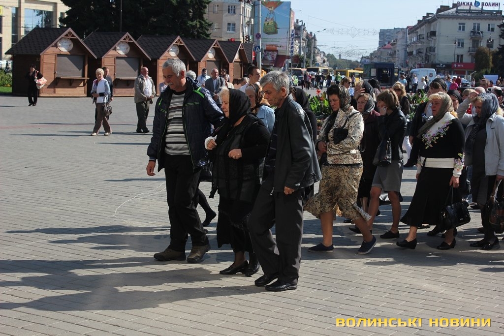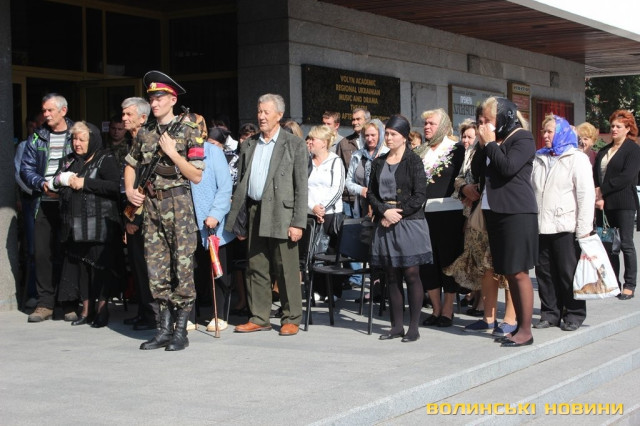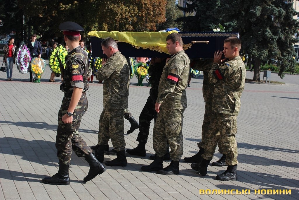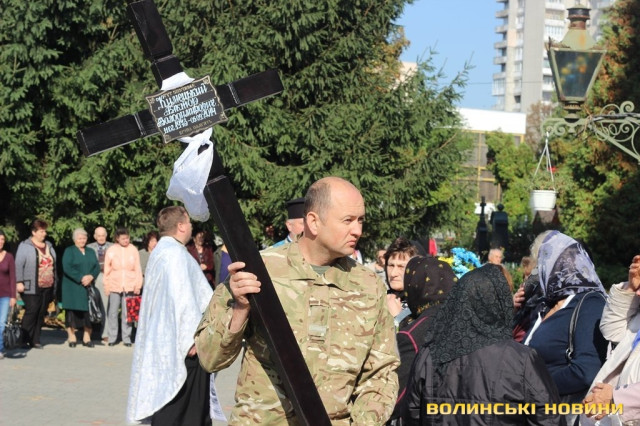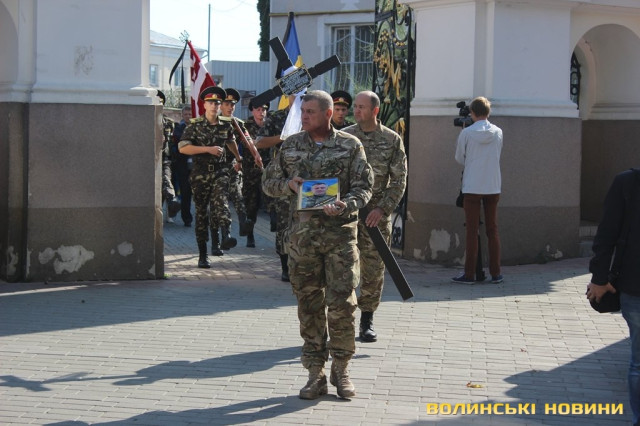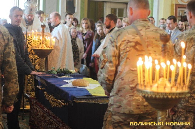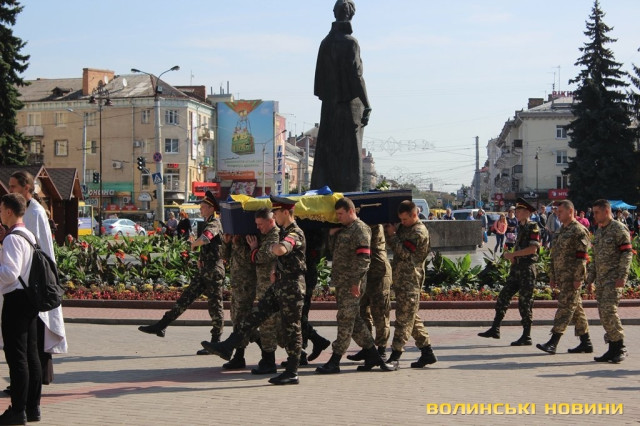 «Скорботний дзвін і новина зібрали нас сьогодні у цьому кафедральному Соборі, щоби провести в останню дорогу з пошаною Героя та воїна, який, захищаючи рідну державу, віддав найцінніше, що у нього було – життя. Людське життя подібне до свічі. Коли вона нова, велика й яскраво горить, на неї усі звертають увагу. Перед нею стоять і моляться, думаючи про сокровенне. І чим більше вона догоряє до кінця, тим все менше ми на неї звертаємо увагу. Але є випадок, коли велика свіча від температури гнеться. І ти думаєш: «Чому? Свічка повинна стояти рівно, але вона зігнулась і не горить». З’являється внутрішній спротив, бо так не повинно бути. Неправильно це, не по-божому, не по-людськи. Але так є. Й сьогодні випробовується душа кожної людини: чого вона варта, які її цінності. Випробовується душа, першою чергою, тих сімей, що випровадили своїх чоловіків на фронт. І ми також, вся громада, розмірковуємо над тим, щоб швидше настав мир. Дякувати Богу, сьогодні маємо перемир’я, не так стріляють і не так масово гинуть наші чоловіки. Але відгомін цієї війни лунатиме ще довго. Ще часто ми будемо проливати сльози, дізнавшись, що знову когось знайшли. Але при цьому ми знаємо, заради чого загинули ці люди – заради України. Воістину великий подвиг здійснює людина, живучи на землі. Але найбільшим подвигом є покласти душу свою за ближніх своїх. Ми гордимось, що є у нас такі чоловіки і це надихає на життя. Вшановувати те, що дає нам Господь нині – кожну мить спілкування, й кожну мить праці. Ми не лише з почестями ховаємо, але найцінніше – це вдячна молитва, і наша пам'ять. Бо ніхто не забутий, і ніщо не забуте», - сказав під час заупокійної проповіді митрополит Луцький та Волинський Михаїл.Після відспівування труну із тілом Героя понесли на Театральний майдан міста. Провести бійця в останній путь прийшли не лише родичі та друзі загиблого, а й небайдужі лучани. Щирих сліз під акорди тужливої пісні-реквієму «Пливе кача» не стримував ніхто.