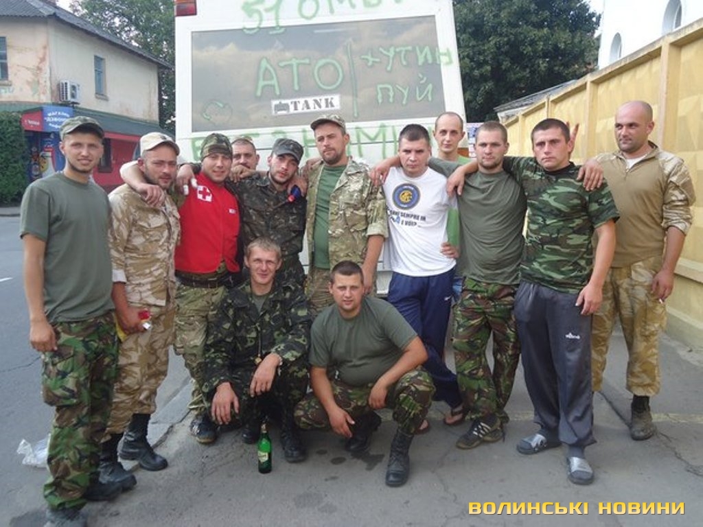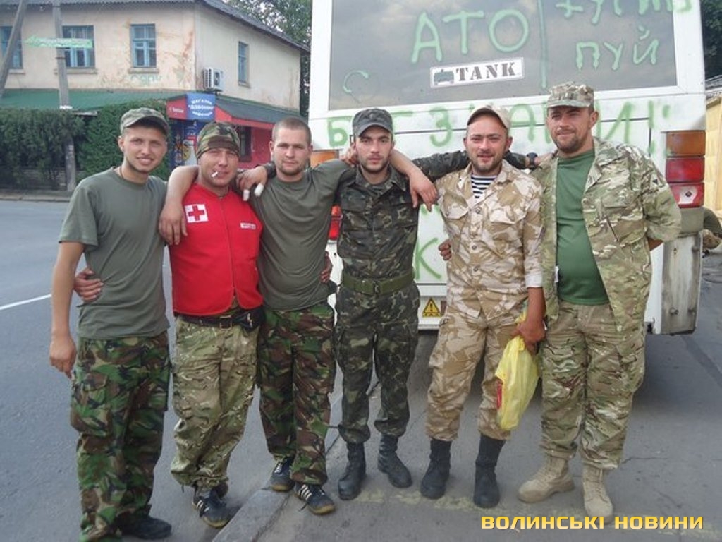 Шестеро бійців з розрахунку Тараса Самчука (всього 8), які вийшли з «іловайського котла». Ще двоє на світлинах нижче, тоді були у відпустці. З ліва на право: Максим Лящук, Андрій Карпюк (Якорь), Тарас Самчук, Криворучко Назар (Бендер), Полюхович Павло (Паштет), Франчук Зорян.Сергій Притолюк (Колобок)Олександр ТанцюраТроє хлопців, з якими Тарас Самчук зупиняв колону російсько-терористичних військ 26.08.2014 року.