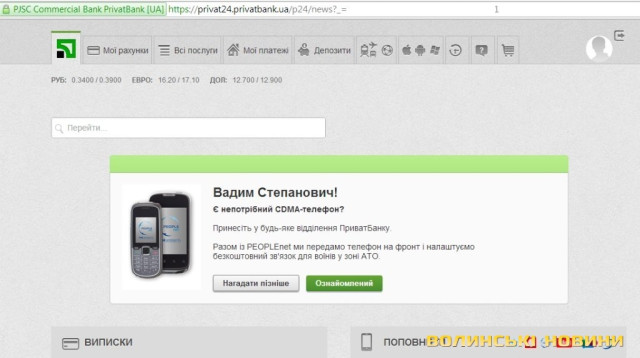 «Ми це розпочали ще у вересні. Ми зрозуміли, що у багатьох є малопотрібні телефони, а на фронті вони багатьом вкрай необхідні. Тим паче, що мобільні під час бойових дій ламаються, губляться. Так, до 1-го вересня ми зібрали 80 телефонів, відремонтували, перепрошили і передали їх. Потім телефони почали ще приносити і ми продовжили акцію до жовтня. Друга партія - 400 мобілок. Про цю акцію ми говоримо нашим клієнтам, а вони - друзям, так і взнають усі про це, а ще, завдяки послузі Приват 24, ми нагадуємо про збір телефонів», - розповідає для Інформаційного агентства Волинські Новини керівник прес-центру регіонального управління «ПриватБанку» Євгенія Ковтун.З її слів, витрати на оплату розмов бере на себе приватна структура і забезпечуватиме воїнів доти, доки триватиме АТО. Для зв’язку вибрали оператора PEOPLEnet, як кажуть, він - найбезпечніший.