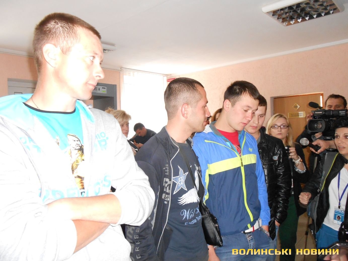 За годину до початку розгляду справи під стінами суду почали збиратися люди. Підтримати солдатів прибули «Автомайдан» та «Самооборона» з Луцька, активісти з Нововолинська та мешканці княжого міста.