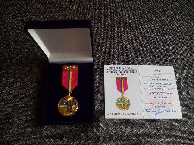 Бійцеві роти патрульної служби міліції особливого призначення «Світязь» УМВС України у Волинській області Максиму Ляшуку посмертно присвоїли нагороду «За відвагу та мужність». Медаль отримав син бійця. Про це інформує в мережі Ольга Ляшук.