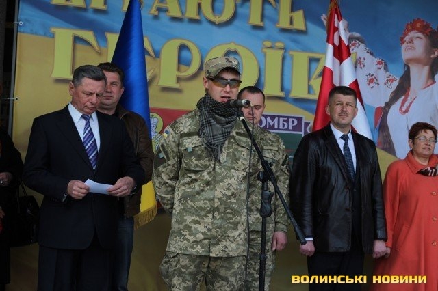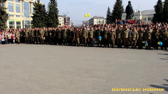 Рівняючись на військових пройшли ліцеїсти урочистим маршем. Адже саме вчинки учасників АТО відтепер увійдуть у військові підручники, за якими навчатимуться майбутні офіцери. А ось голова комітету батьків мобілізованих Ярослав Мудрик розповів, що бійцям танкового батальйону довелося побувати в усіх гарячих точках. Скрізь, де палали заграви ворожих обстрілів, під шквальним вогнем стояли саме волиняни.