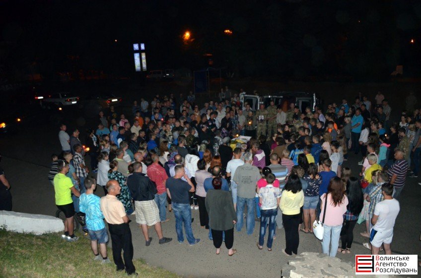 По Луцьку авто з написом “Груз-200” супроводжував автомобіль поліції та активісти. В Рожищах зробили зупинку, де на площі зібралося декілька сотень небайдужих громадян — діти з лампадками, жінки з квітами, багато молоді.