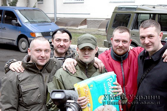 Аби привітати батьків із такою подією, під стінами Луцького клінічного пологового будинку із подарунками зібралися його бойові побратими на чолі із командиром підрозділу Олександром Фацевичем.