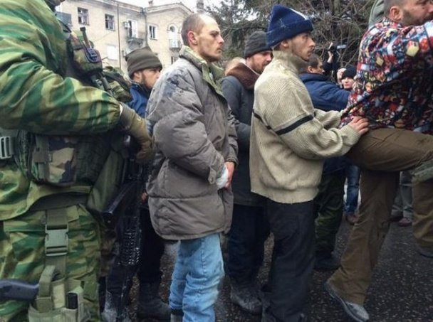 У Донецьку, де сьогодні бойовики обстріляли зупинку і вбили вісьмох мирних людей, "ДНРівці" влаштували "парад полонених" військових.