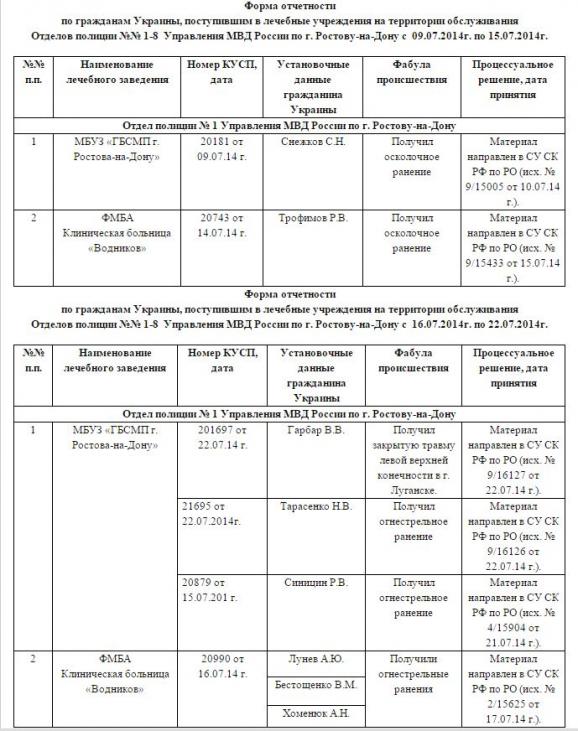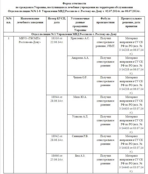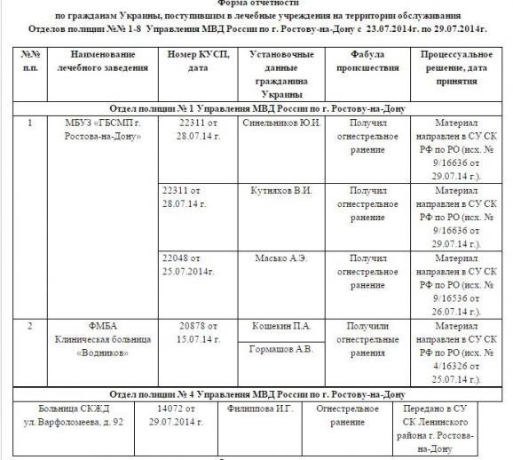 "Ось дуже маленька звітність, яку справно складав начальник Чергової частини УМВС Росії по Ростову-на-Дону майор поліції М.Ю. Лобасов", - зазначила Васильєва, додавши, що сам майор не причетний до передачі документів.