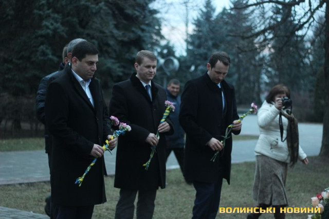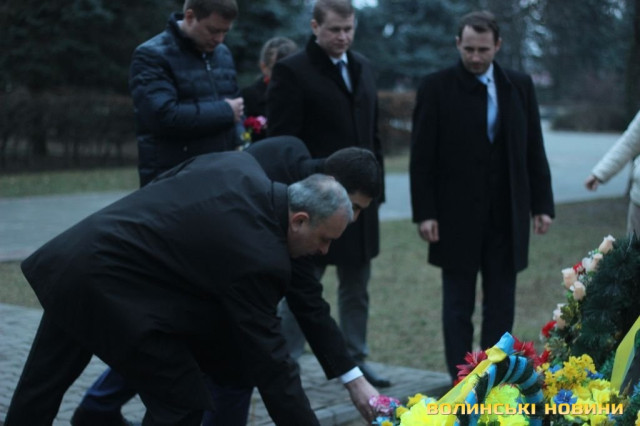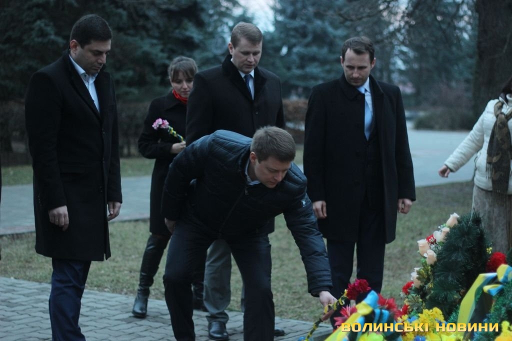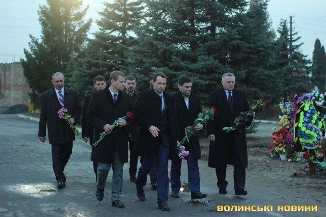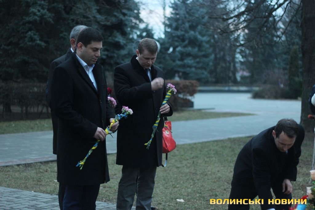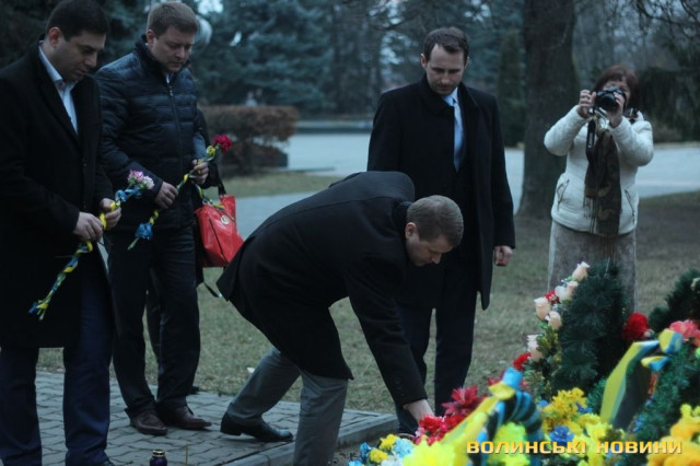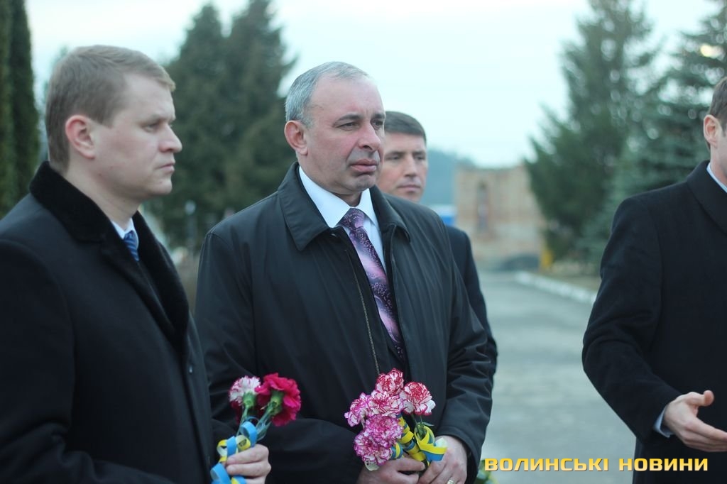 «Щоб ми жили так, як жили до того, бо ділити нам немає чого», - зазначив він.Опісля члени делегації разом з секретарем Луцької міської ради Сергієм Григоренком поклали квіти до могили загиблого на Майдані 20 лютого 2014 року Василя Мойсея. Поблизу пам’ятного каменя, замість якого планують встановити пам’ятник загиблим на Майдані волинянам нардеп з Волновахи Дмитро Лубінець розповів, що сам він до революційних подій не відчував себе патріотом, проте все змінили відомі події. Народний обранець каже, що був на центральній площі Києва, хай не з першого дня протистоянь, але до останнього.