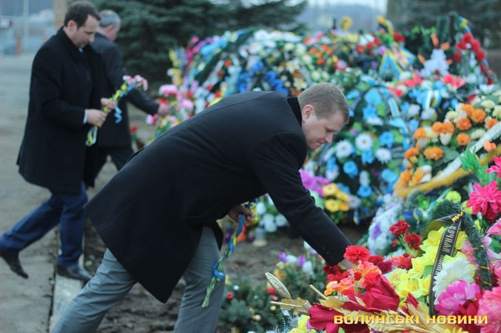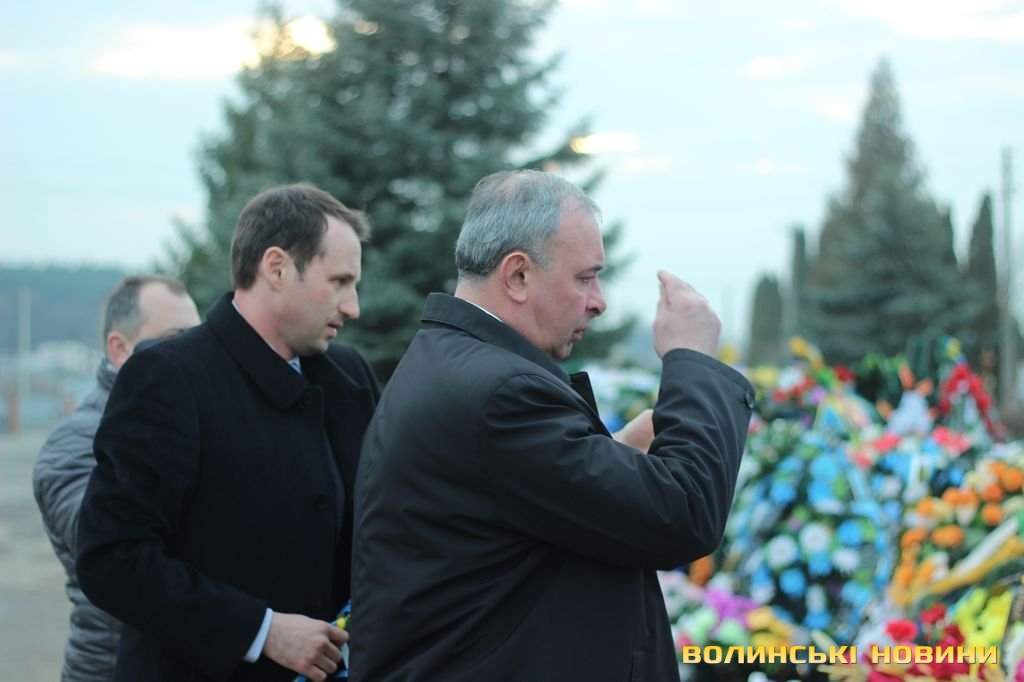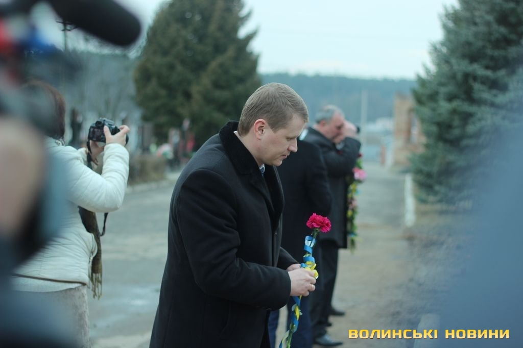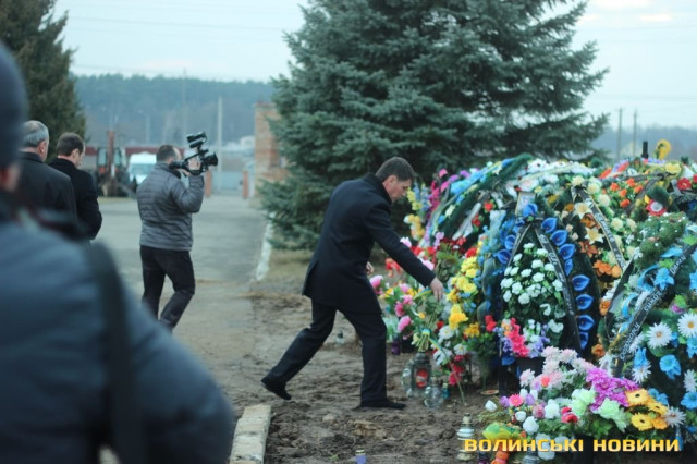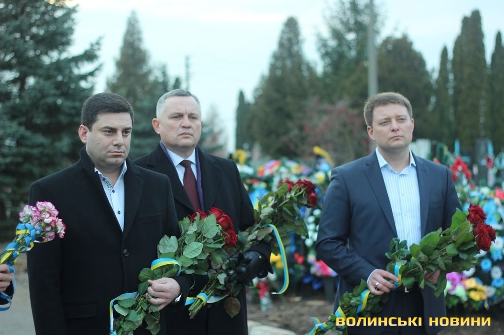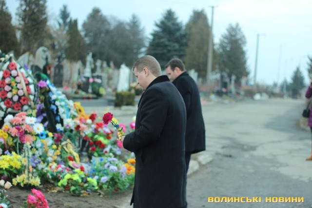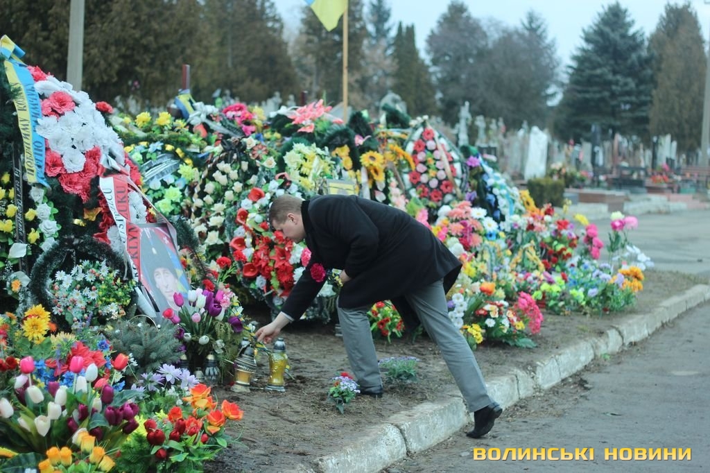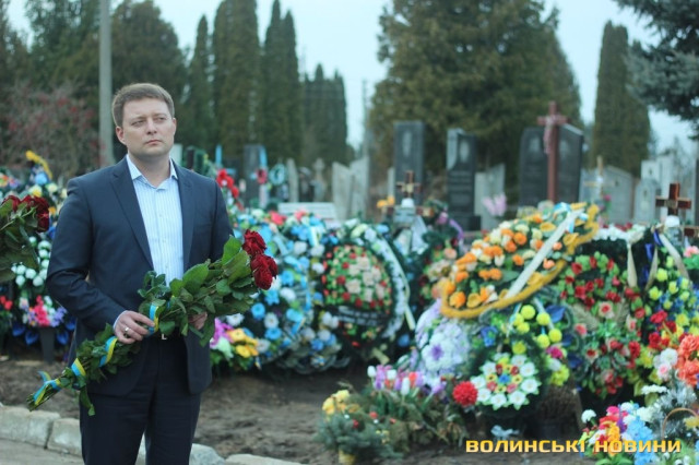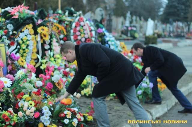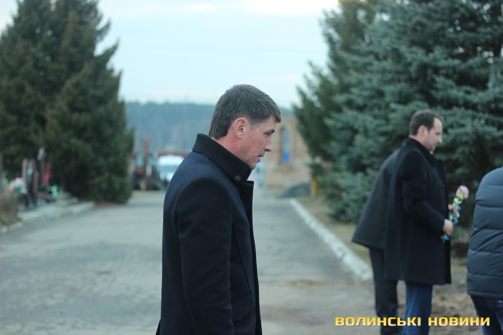 Так, на цвинтар, що в селі Гаразджа, прибув міський голова Волновахи Сергій Демченко, мер міста-партнера Кузнецовська Ігор Куц й нардеп-мажоритарник від Волновахи Дмитро Лубінець. До слова, завтра, 25 лютого, між містами Луцьк та Волноваха відбудеться угода про співпрацю, до якої Кузнецовськ долучиться в рамках партнера.