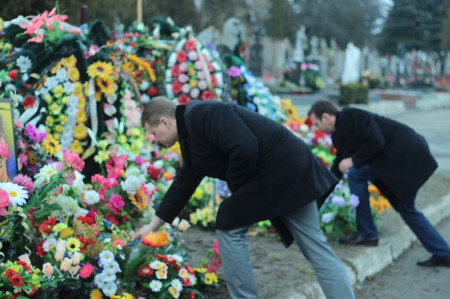 Покладання квітів до могил лучан, загиблих під Волновахою в травні 2014 року, а також до могили майданівця Василя Мойсея за участі мера міст Кузнецовська та Волновахи й місцевого народного депутата України відбулось сьогодні, 24 лютого.