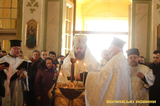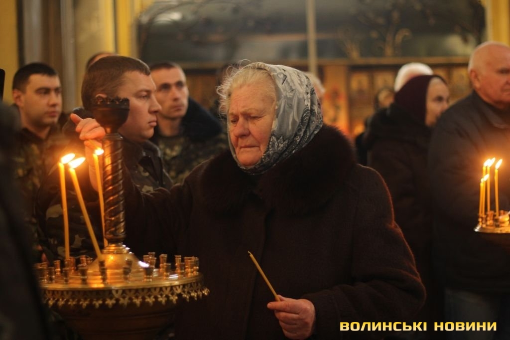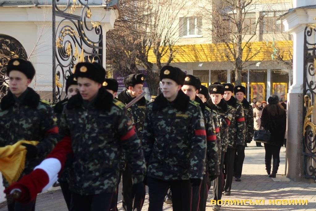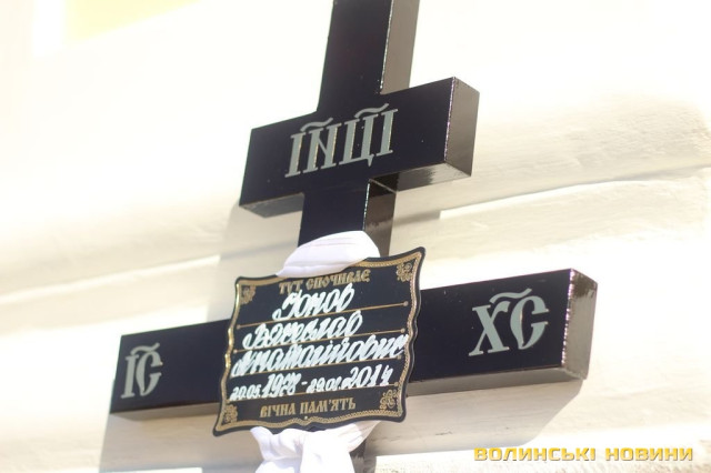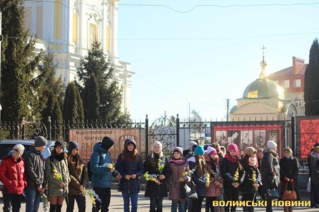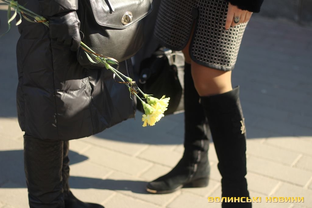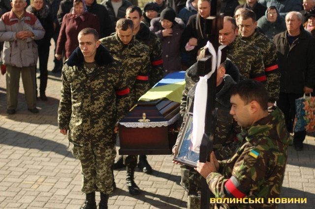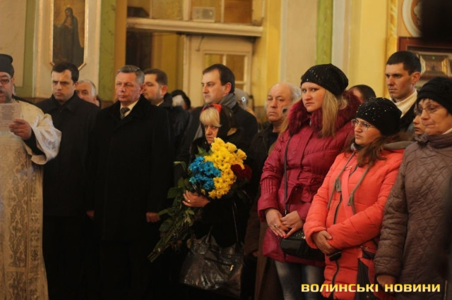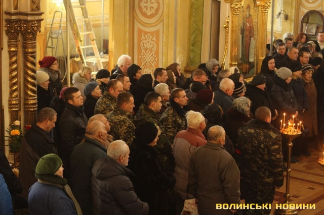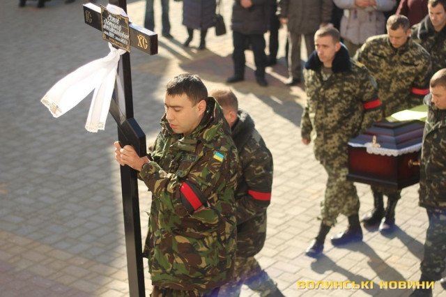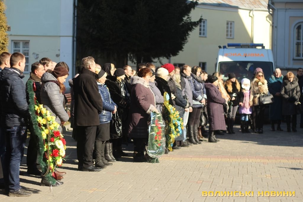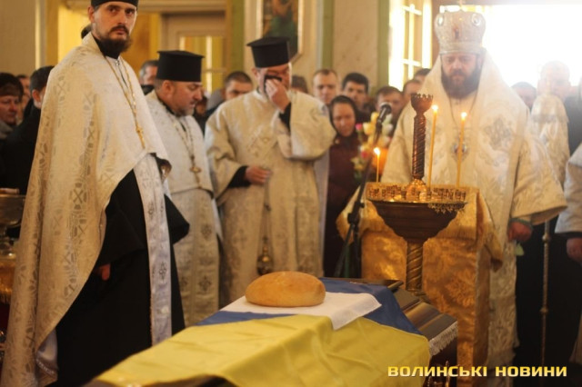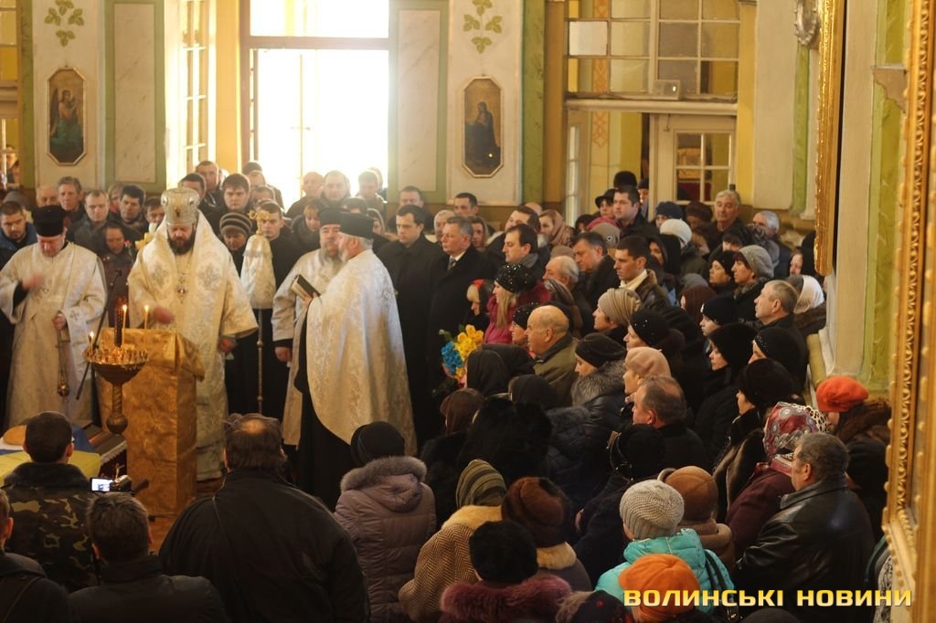 Попри те, що літургія щойно розпочалась, поблизу виходу з храму вишикувались діти з жовто-синіми квітами, таким чином утворивши коридор до центральної частини Театрального майдану.Нагадаємо, боєць з Волині довгий час був у списку тих, хто пропав безвісти. Проте згідно з результатами проведених експертиз вдалось ідентифікувати особу чоловіка. Він у складі 51-ї окремої механізованої бригади виконував завдання у зоні АТО. Зв'язок з ним обірвався 28 серпня 2014 року. На той час він знаходився поблизу Іловайська Донецької області.
