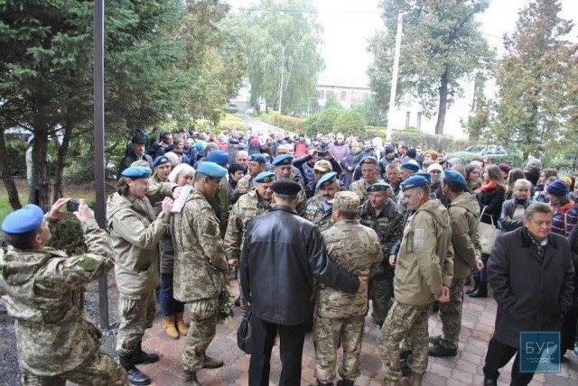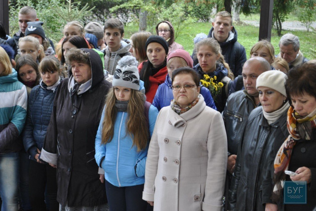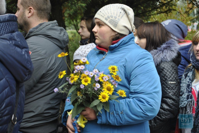 Батько “кіборга” Володимир Демчук подякував учням та вчителям, за те що зібрали кошти на пам’ятку, а хлопцям в синіх беретах Збройних Сил України за те що, приїхали віддати шану його сину.