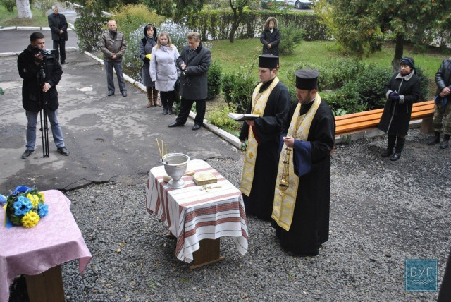 Меморіальну дошку освятили отці Цекрви Саятого Михаїла – настоятель Михайло та ієрей Олексій.