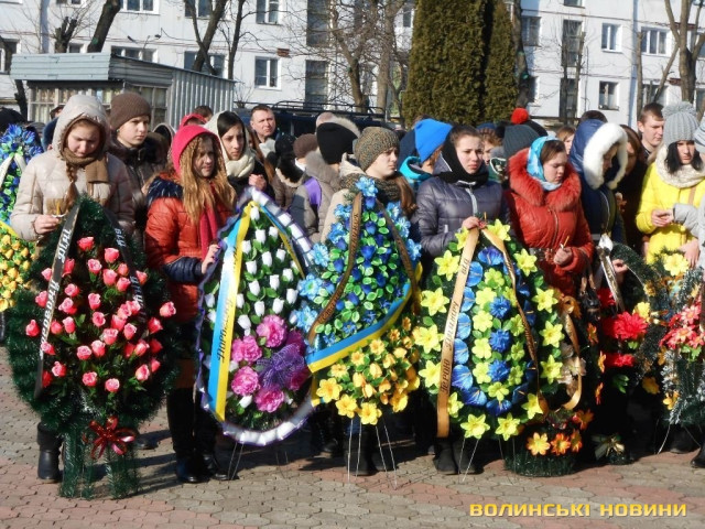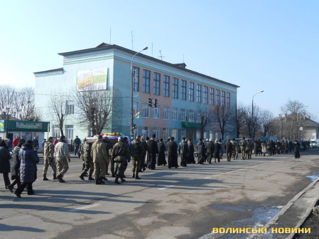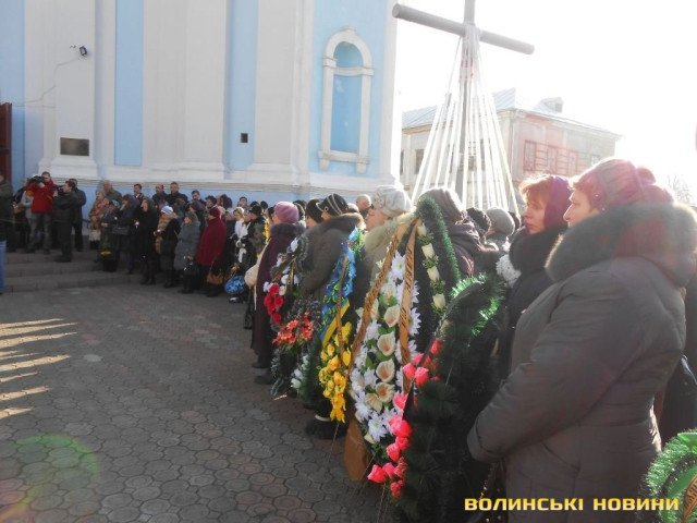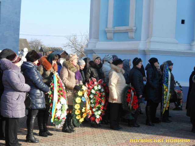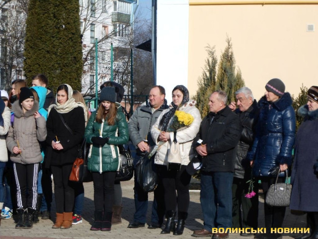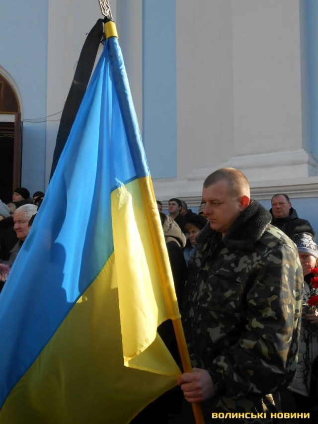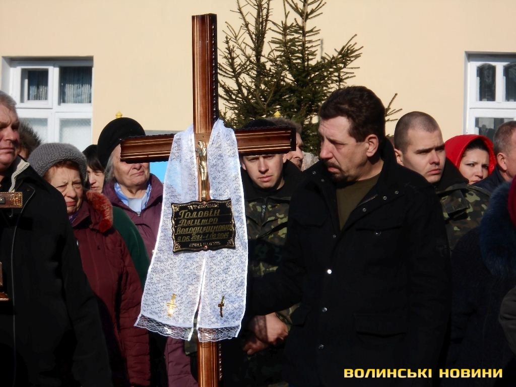 Сотні володимир-волинців прощалися сьогодні, 5 лютого, із загиблим на Луганщині Героєм Дмитром Головіним.