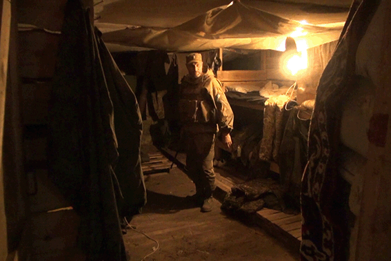 Їдемо на блокпост. Трохи кілометра відділяє нас від окупованої бойовиками території. Хлопці показують спорудження, де вони знаходяться під час обстрілів з боку бойовиків, та так званий «побут» на блокпосту.