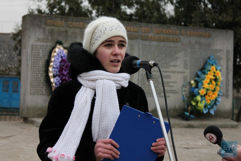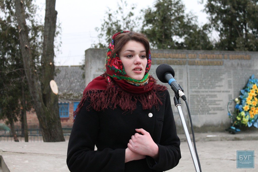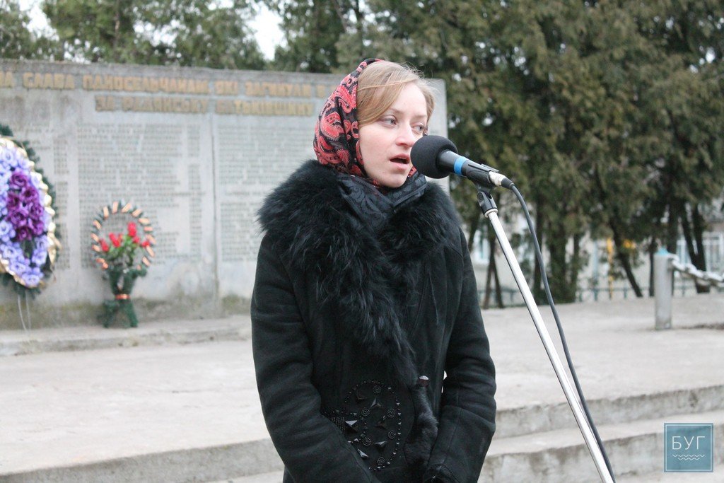 До громади вийшла також Остапюк Оленка, двоюрідна сестра загиблого на Майдані Сергія Байдовського, яка зі словами вдячності й болю згадала про трагічні моменти останнього року історії нашої країни, подякувала всім героям, які відстоювали незалежність на Майдані та роблять це сьогодні сході.