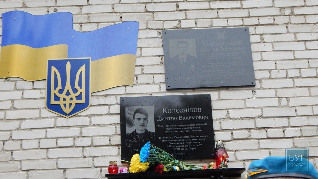 Меморіальні дошки Дмитру Колєсніку та Віктору Хмелецькому відкрили в НВК№3 "школа-ліцей" у Володимирі-Волинькому. Саме випусниками цієї школи були загиблі в зоні АТО Герої.