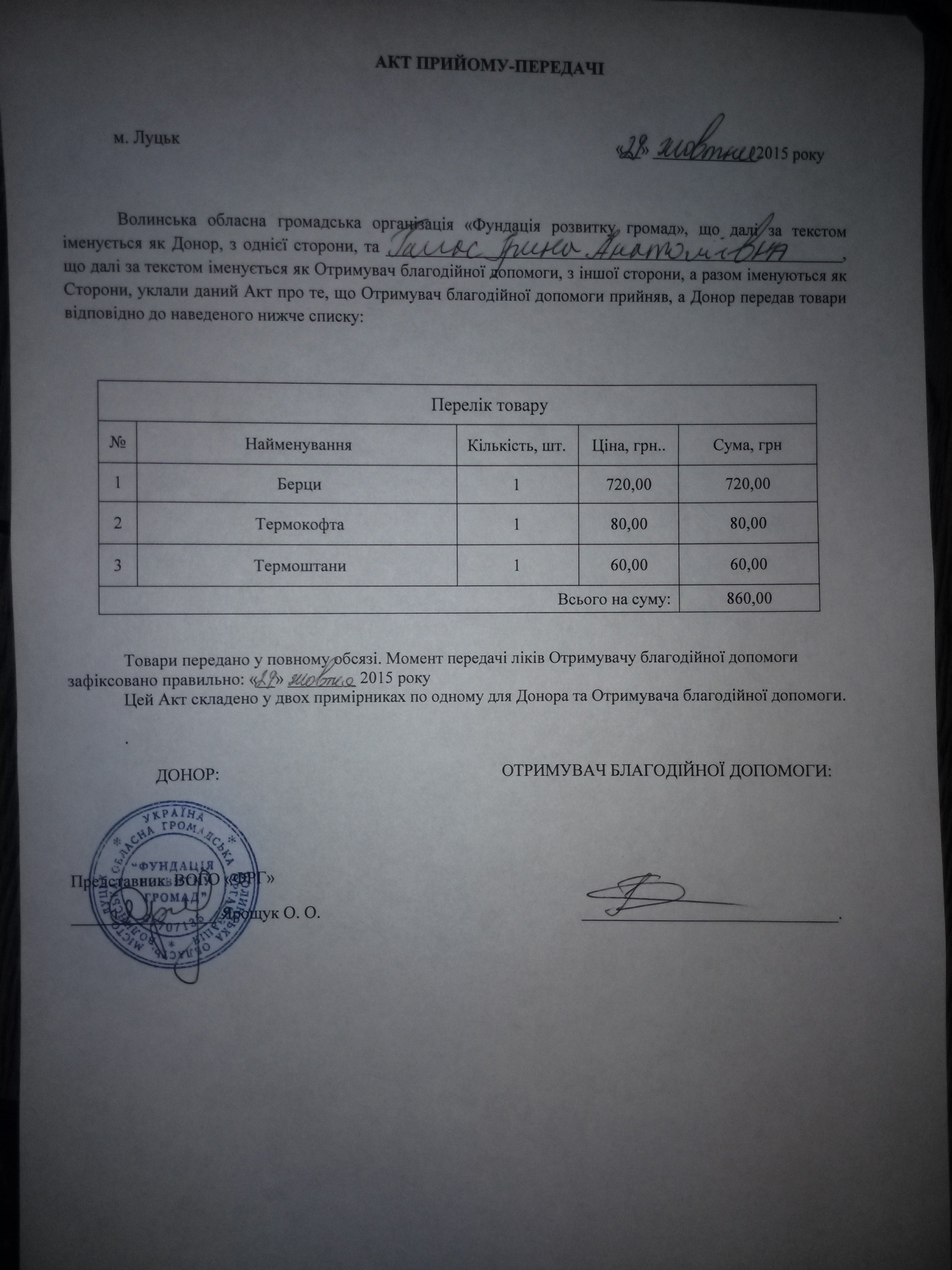 Члени Волинської обласної громадської організації «Фундація розвитку громад» відгукнулися на прохання. Кошти вони зібрали, речі закупили.