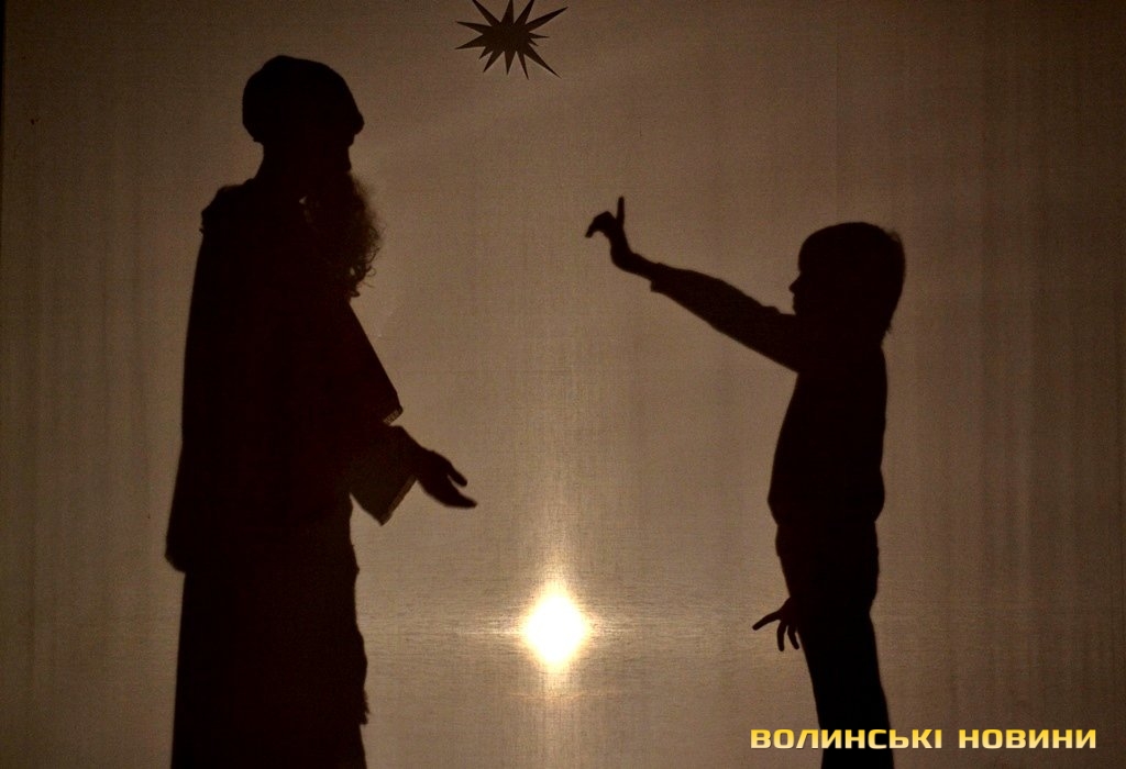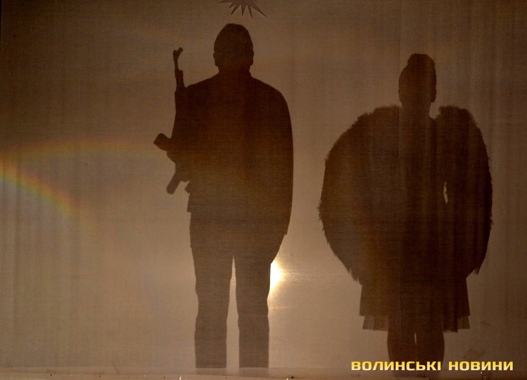 Також учні цієї школи показали виставу театру тіней. Сюжет розкриває легенду про Святого Миколай: жив хлопчик, в якого померли батьки й його виховували чужі люди. Коли юнак виріс, то почав допомагати нужденним, роздав все своє добро. Коли ж він помер, його зарахували до святих. А от одного разу прийшов Святий Миколай до хлопчика і хотів йому подарувати солодощі та багатство, але він попросив лише одного - маму. І з’явилася в дитини мама. Він жив довго і щасливо, але одного разу прийшла війна, і хлопець мусив йти захищати рідну землю.Наприкінці заходу учні подарували воїнам зірки з іконами, щоб вони їх оберігали.
