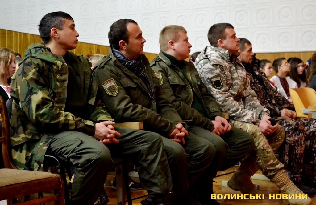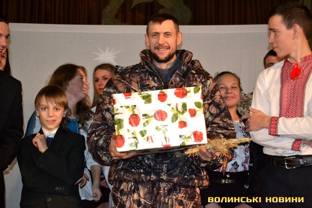 «Я приїхав на Волинь і в мене складається таке враження, що ніхто не розуміє, що в країні - війна. Люди так думають, бо тут не вбивають. Втім, дуже приємно, що в школах організовують подібні заходи: вони просто необхідні й актуальні зараз. Враження від дійства у мене найпозитивніші. Помітно, що діти прониклися. Мої побратими, які теж прийшли сюди, в окремі зворушливі моменти аж плакали», - розповідає для Інформаційного агентства Волинські Новини боєць ДУКу.Свято у цій школі було незвичне, бо запросили «кіборгів» з позивними: Псевдоохотнік, Карабан, Молдован, Горинь й для них присвятили дійство та підготували подарунки.