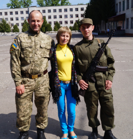 «У моїй родині не було військових, але коли пробив тривожний час зять та онук стали на захист країни. Першим до лав Збройних Сил пішов мій зять Микола. Три місяці у складі 27-го окремого Сумського зенітно-артилерійського полку він був на Донеччині. Зараз їхній полк, який має на озброєнні «Урагани», відведений за десятки кілометрів від лінії фронту - так, як це передбачають Мінські угоди.
