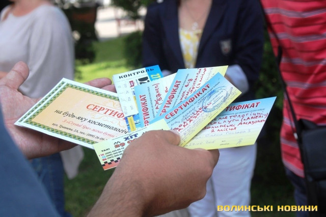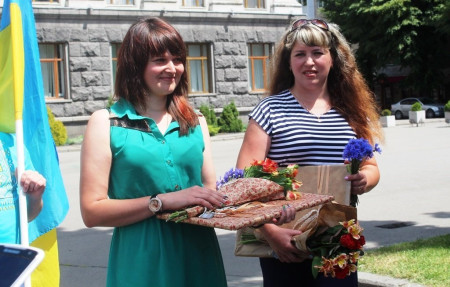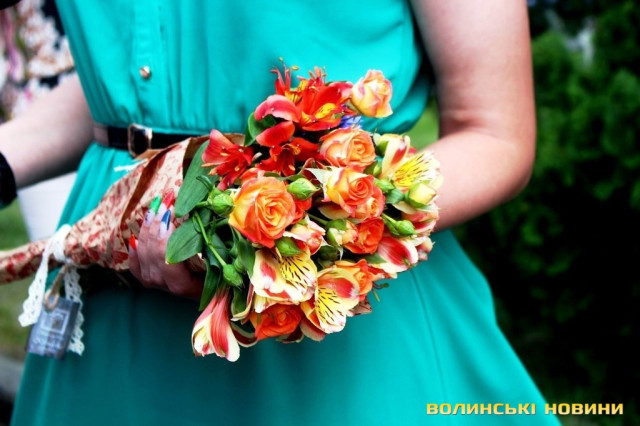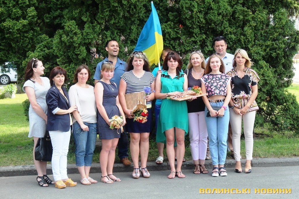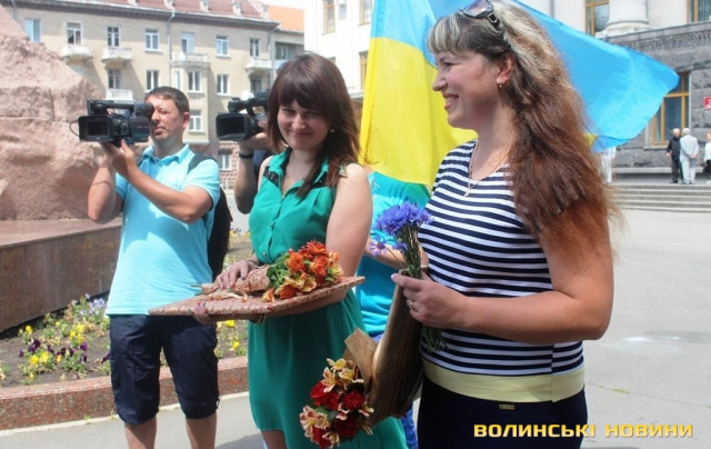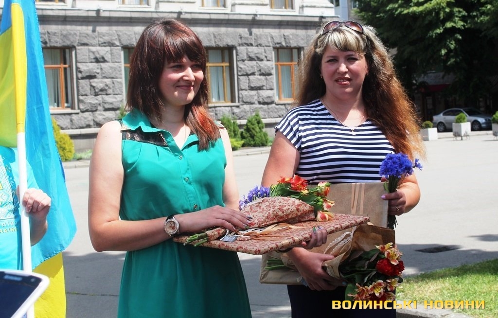 Інна Свередюк та Марина Бачинська - зв’язкові 14-ї ОМБР, яка розташована у Володимирі-Волиньському, сьогодні, 27-го червня, приїхали в Луцьк. Тут вони не у військовій формі, а в гарненьких сукенках, із подарунками в руках та квітами.