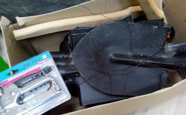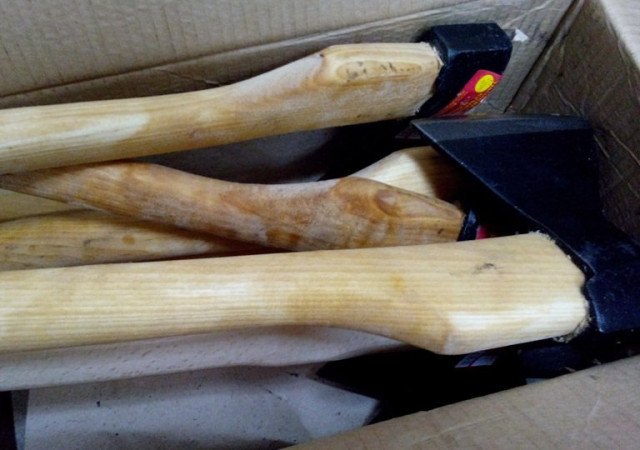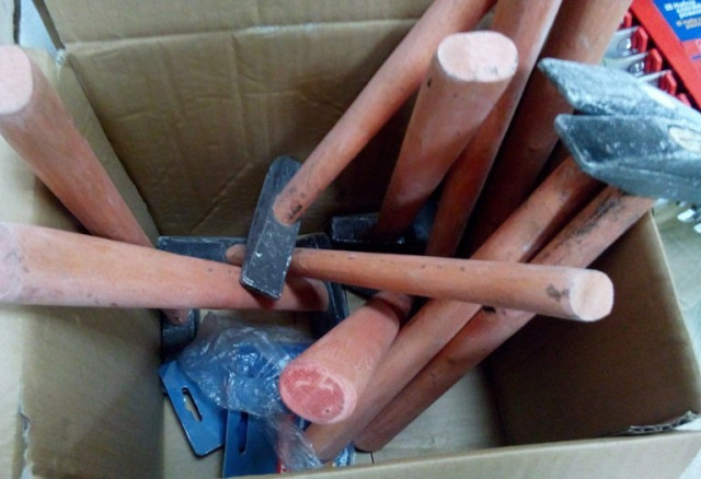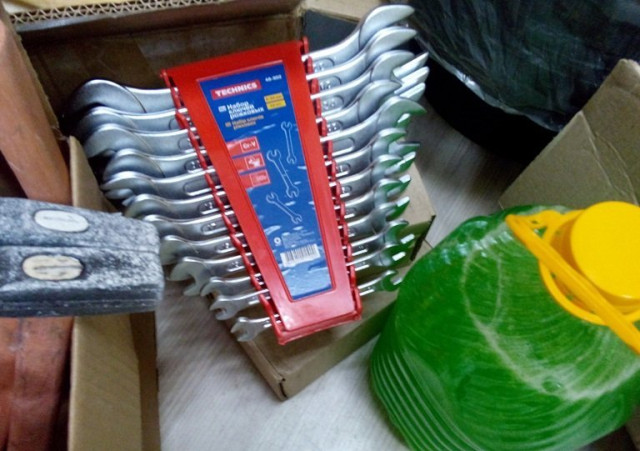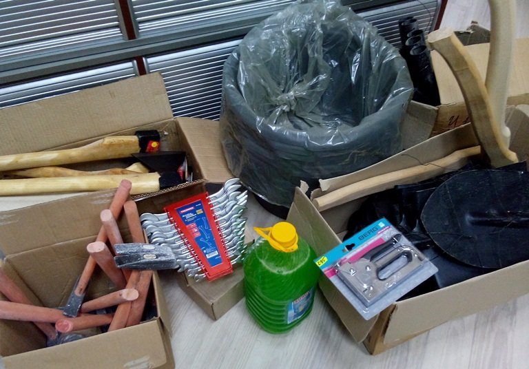 Серед придбаного - три десятки совкових та тикових лопат, десять ножівок по дереву, стільки ж сокир та молотків, десять кілограмів 150 мм цвяхів, набір ріжкових ключів, 25 одинарних розеток, стільки ж вимикачів, степлер універсальний та скоби до нього, електролампа, 5 літрів миючого засобу та двадцять двадцятилітрових тазів.