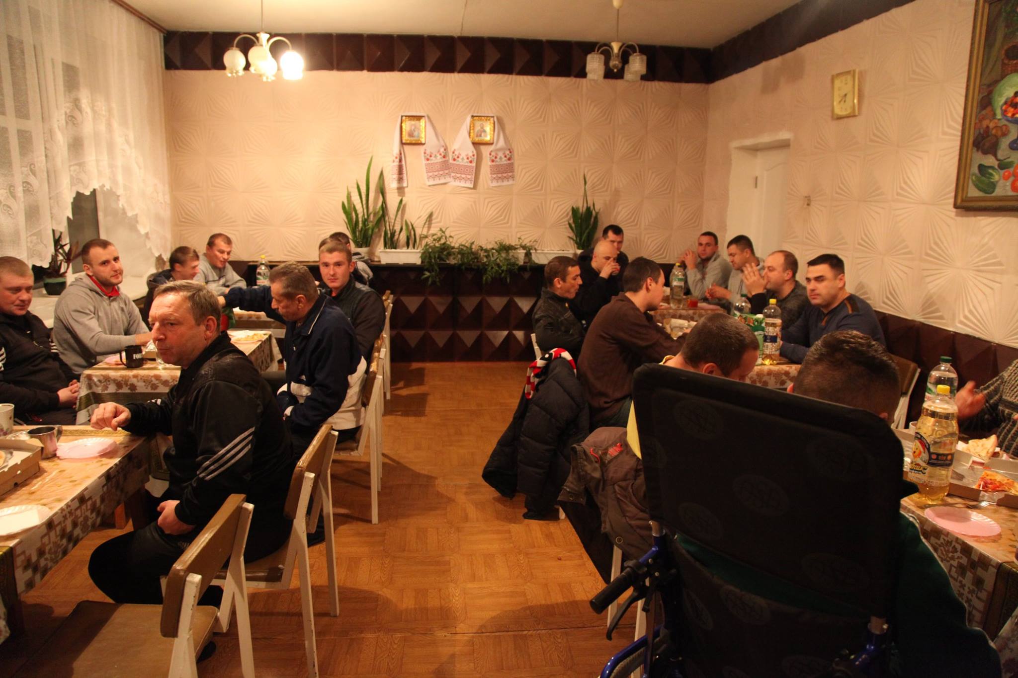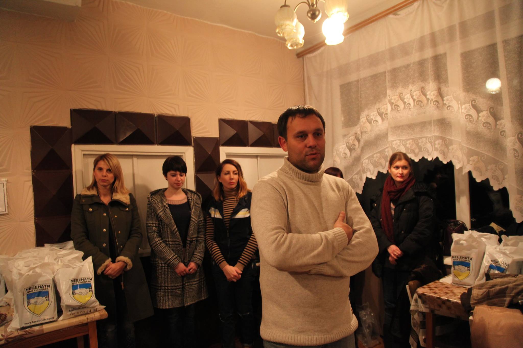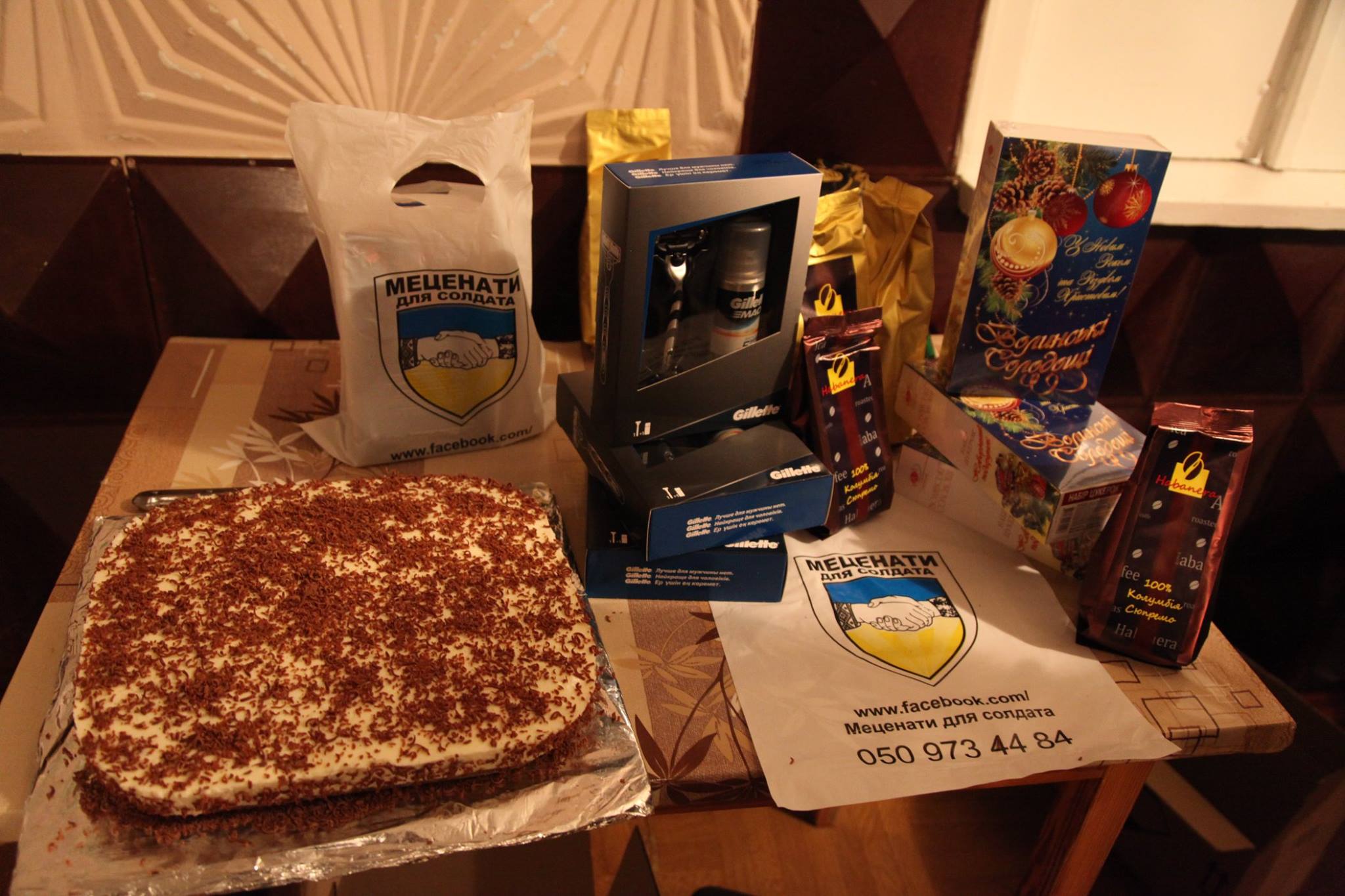 «Щира подяка нашим меценатам, що відгукнулись на наше прохання і долучились до святкової атмосфери: Піцерія Соло – за забезпечення бійців 10-ма смачними піцами, Етноресторану «Панич» та особисто нашому волонтеру Ірині Гордійчук – за смачненький торт та за левову оплату подарункових чоловічих наборів (гель та бритва для гоління + 1 запасний картридж), а також нашому новому меценату – співвласнику ТзОВ «Цунамі» Володимиру Вдовенку за смачну і запашну каву для бійців та подарункові набори цукерок усім бійцям та медперсоналу. Спасибі компанії VN Trade за безкоштовно виготовлені чудові рекламні торбинки з нашим логотипом, в які ми постійно щось кладемо бійцям!!!» ‒ дякує волонтер помічникам.