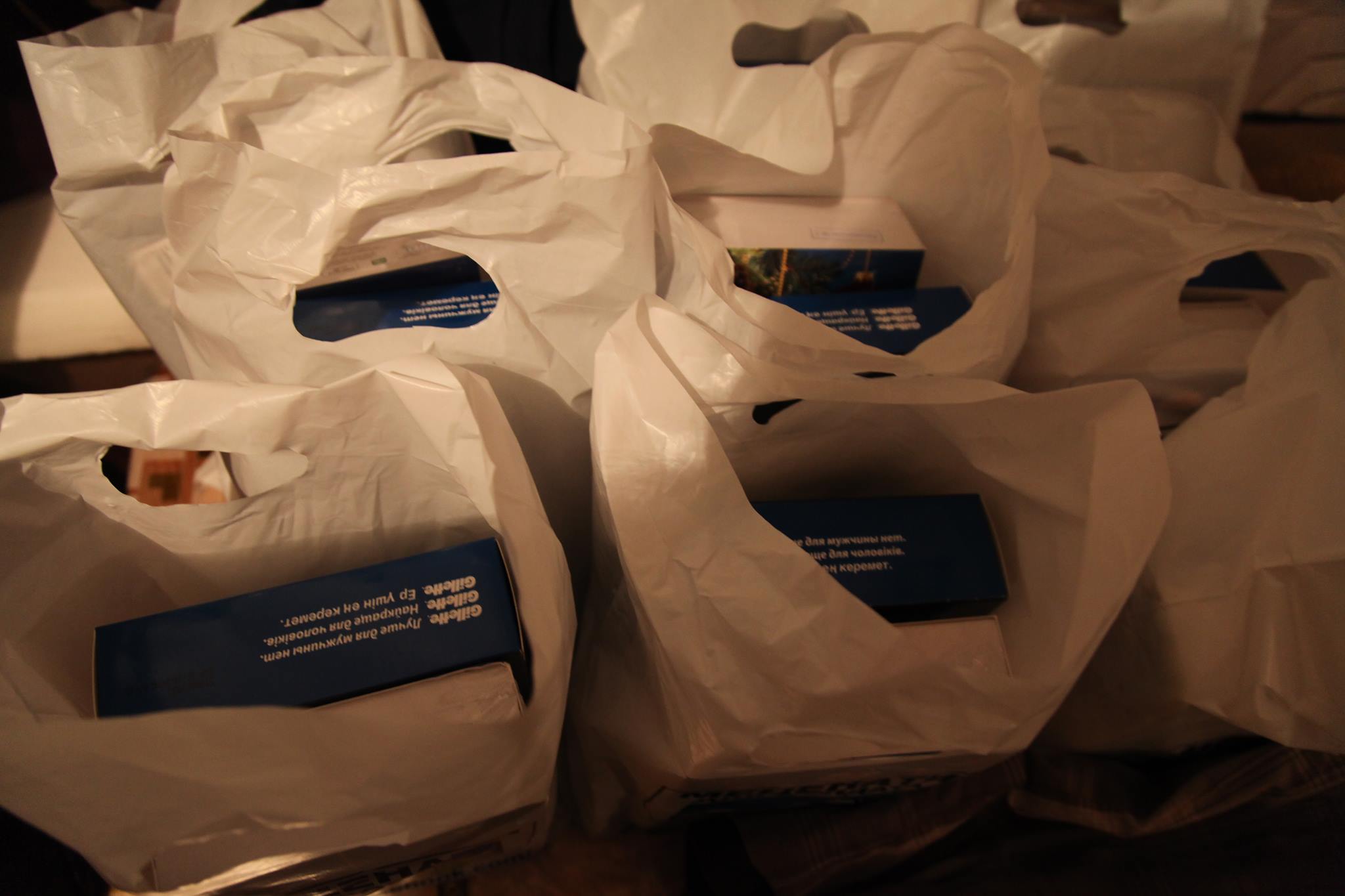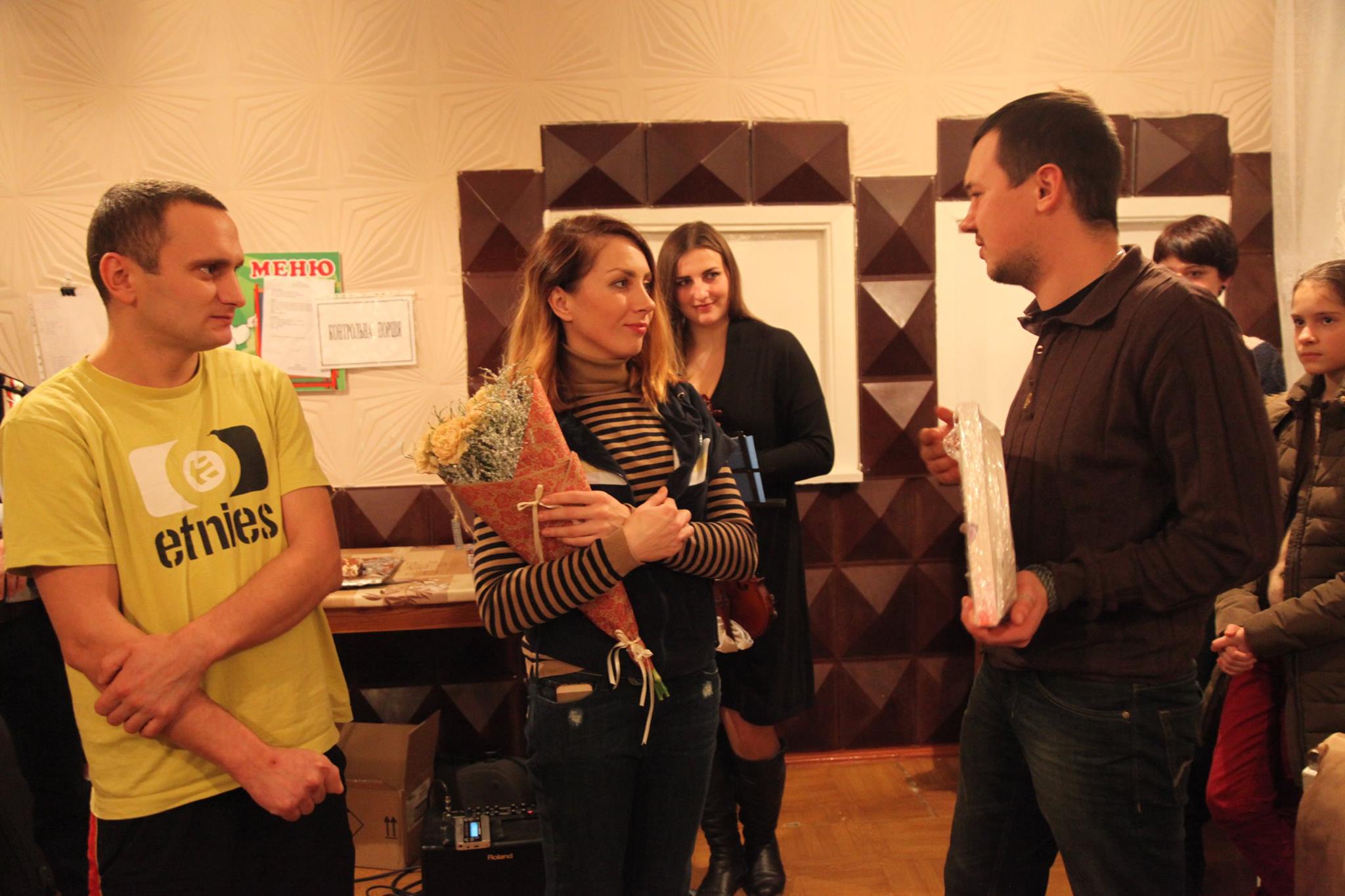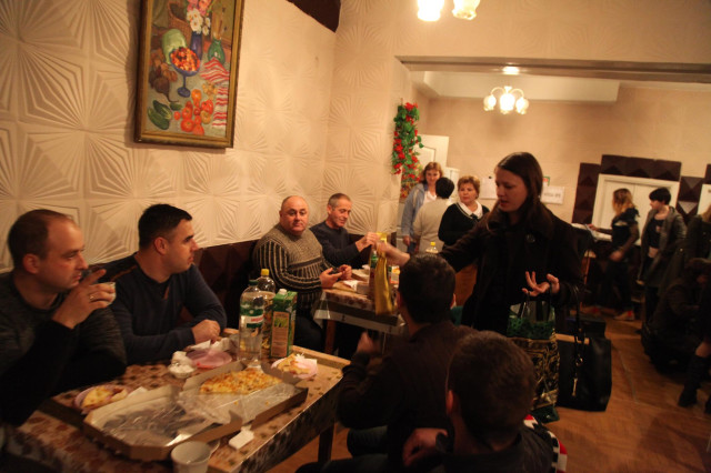 «Щира подяка нашим меценатам, що відгукнулись на наше прохання і долучились до святкової атмосфери: Піцерія Соло – за забезпечення бійців 10-ма смачними піцами, Етноресторану «Панич» та особисто нашому волонтеру Ірині Гордійчук – за смачненький торт та за левову оплату подарункових чоловічих наборів (гель та бритва для гоління + 1 запасний картридж), а також нашому новому меценату – співвласнику ТзОВ «Цунамі» Володимиру Вдовенку за смачну і запашну каву для бійців та подарункові набори цукерок усім бійцям та медперсоналу. Спасибі компанії VN Trade за безкоштовно виготовлені чудові рекламні торбинки з нашим логотипом, в які ми постійно щось кладемо бійцям!!!» ‒ дякує волонтер помічникам.