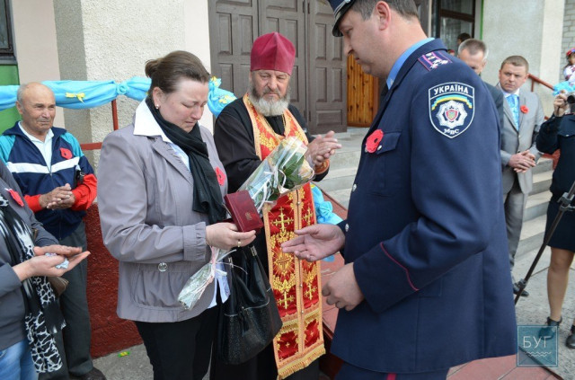 Також на заході був присутній начальник міліції громадської безпеки УМВС України уВолинській області Анатолій Шумик. Він подякував батькам за те, що вони виховали героя, сказавши, що відповідно до указу Президента, Сацюка Олександра посмертно нагороджено орденом «За мужність» ІІІ ступеня. Нагороду Анатолій Шумик вручив матері Сашка.
