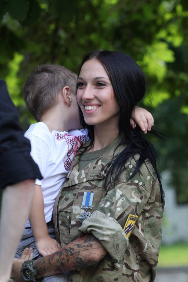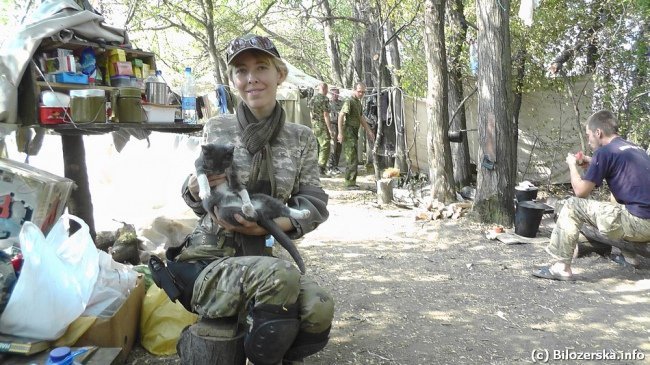 «Головна проблема для мене в армії – це розмір одягу. А ще те, що держава просто не помічає існування жінки в армії. Жодна з дівчат, які воюють у добробатах, не були забезпечені одягом, взуттям, засобами гігієни та самозахисту. Та й ті, що в регулярній армії, отримали хіба що форму, але на п'ять розмірів більшу, ніж треба. Для дівчат не виділяють навіть окремого приміщення – вони живуть у кімнаті, де мешкає 180 чоловіків. У нашому батальйоні до жінки ставляться з повагою, але це, звісно, залежить від того, як себе людина поставить. Нашим дівчатам із медичного взводу виділили окремий будиночок», – розповідає санінструктор батальйону «Азов» Олена Мосійчук із позивним «Мальок».
