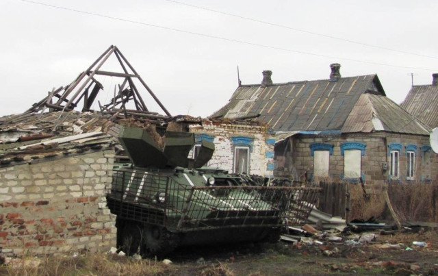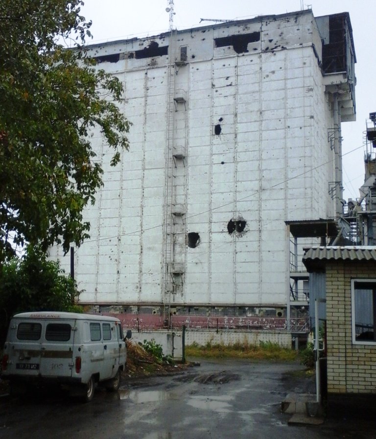 - Вони тут міцно сиділи, - розповідав мені заступник комбата танкового батальйону «Бедрик», який на той час був військовослужбовцем 51-ї бригади. – Сєпари засіли за цим бетонним парканом коло елеватору. Ми як почали по ним валити, то ті бетонні секції по повітрю літали. А от у тих будинках снайпер сидів. Його піхотинці завалили.