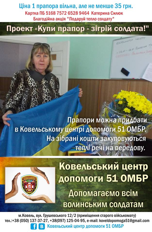 Проект "Купи прапор - зігрій солдата". Ціна 1 прапора - вільна, але не менше 35 гривень.