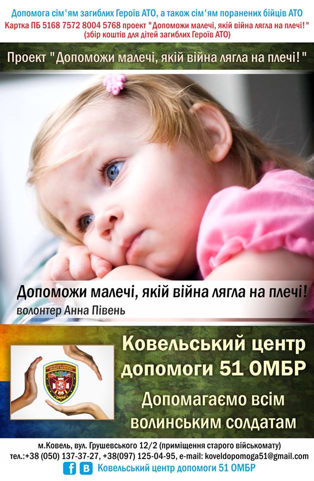 Проект "Допоможемо малечі, якій війна лягла на плечі" (збір коштів для дітей загиблих Героїв АТО).