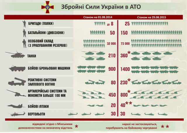 Так, загальна чисельність особового складу українських військових на Донбасі збільшилася з 32 до 73 тисяч осіб.