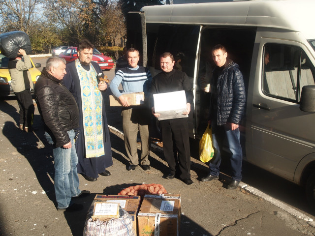 Душпастир благословив на щасливу подорож водія Михайла Стецюка та голову управління агропромислового розвитку міста Миколу Панасюка. Перед поїздкою прочитав молитву та освятив машину.