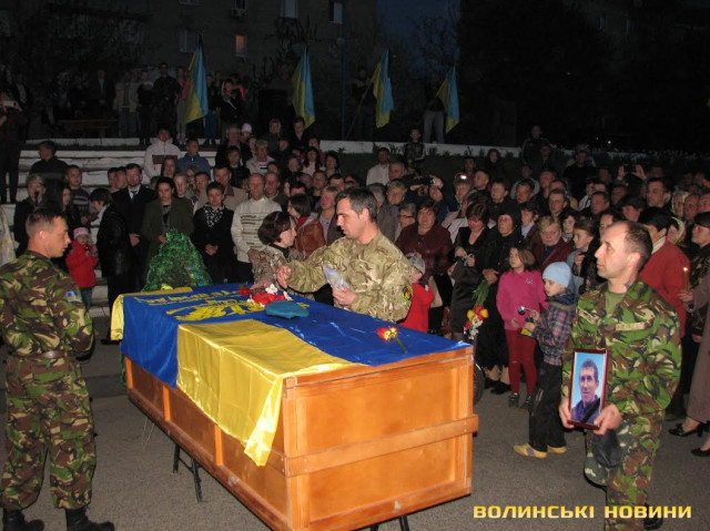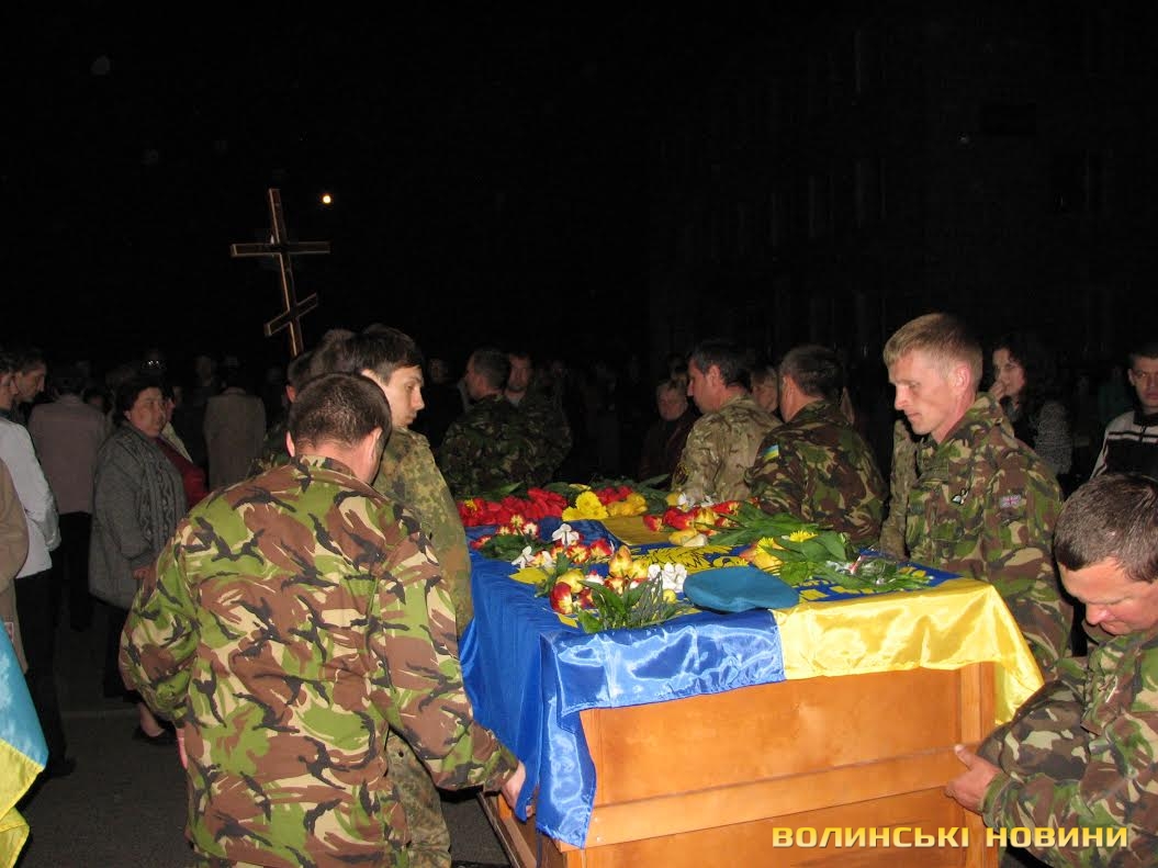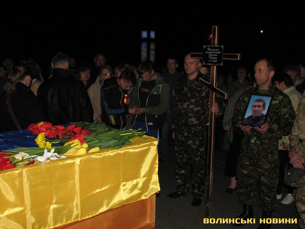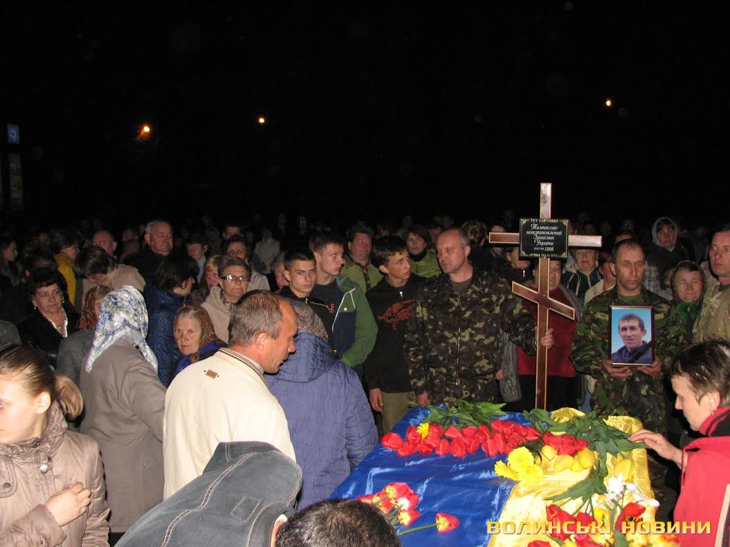 А сьогодні представники ГФ «Народна самооборона міста Рожища» та військкомату пізно ввечері доправили труну з тілом загиблого на рідну землю. На центральну площу міста зійшлося чимало людей, аби віддати останню шану своєму захиснику.