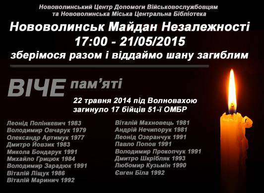 Нагадаємо, 22 травня 2014 року під Волновахою Донецької області загинуло 17 бійців тодішньої 51-ї ОМБР. Зібратися разом та віддати шану загиблим закликають організатори.