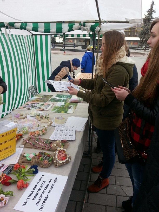 «Зібрані від ярмарку кошти будуть витрачені на закупівлю наколінників та налокітників для розвідників 14 бригади. Хлопці днями вирушають на Схід, їм потрібна суттєва матеріальна допомога, тому просимо людей і надалі не залишатись байдужими і долучатись до збору коштів та речей для бійців», - додає одна з організаторок акції Юлія Євпак.