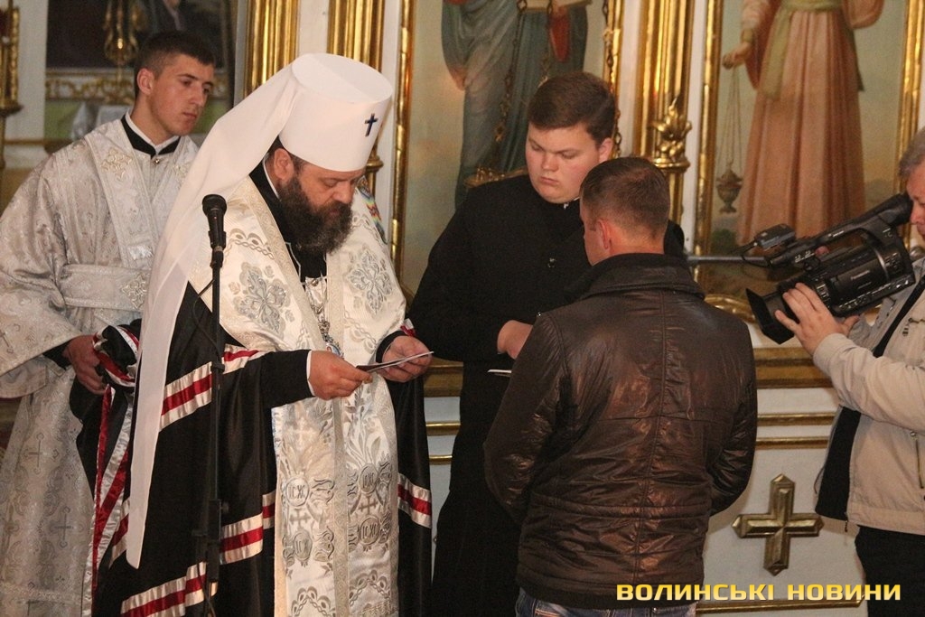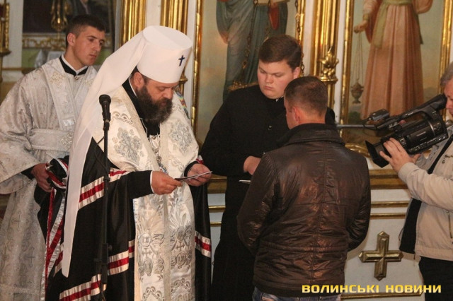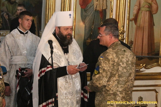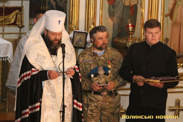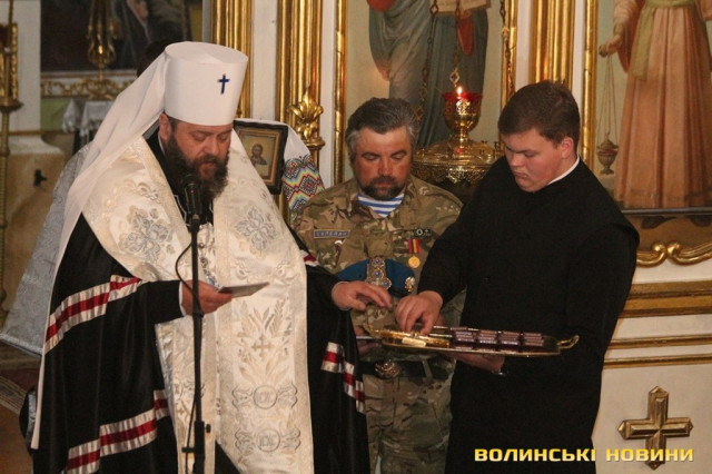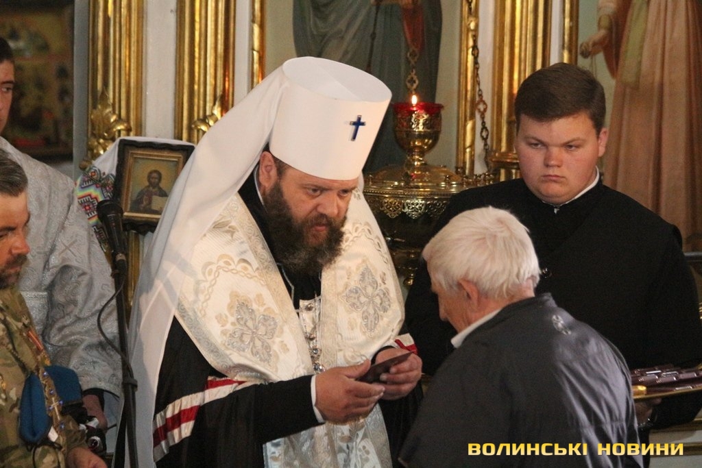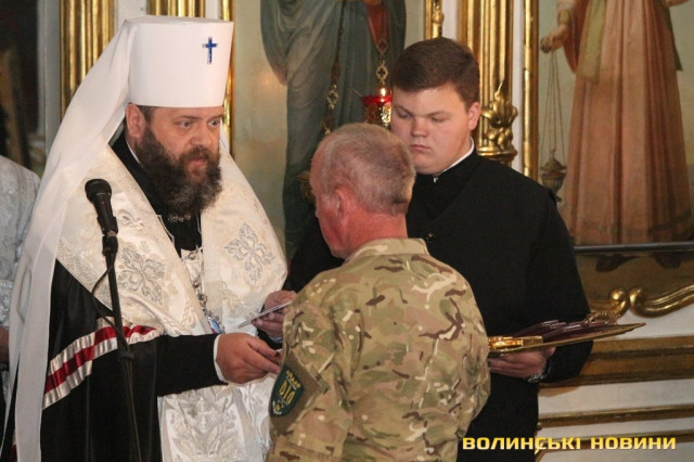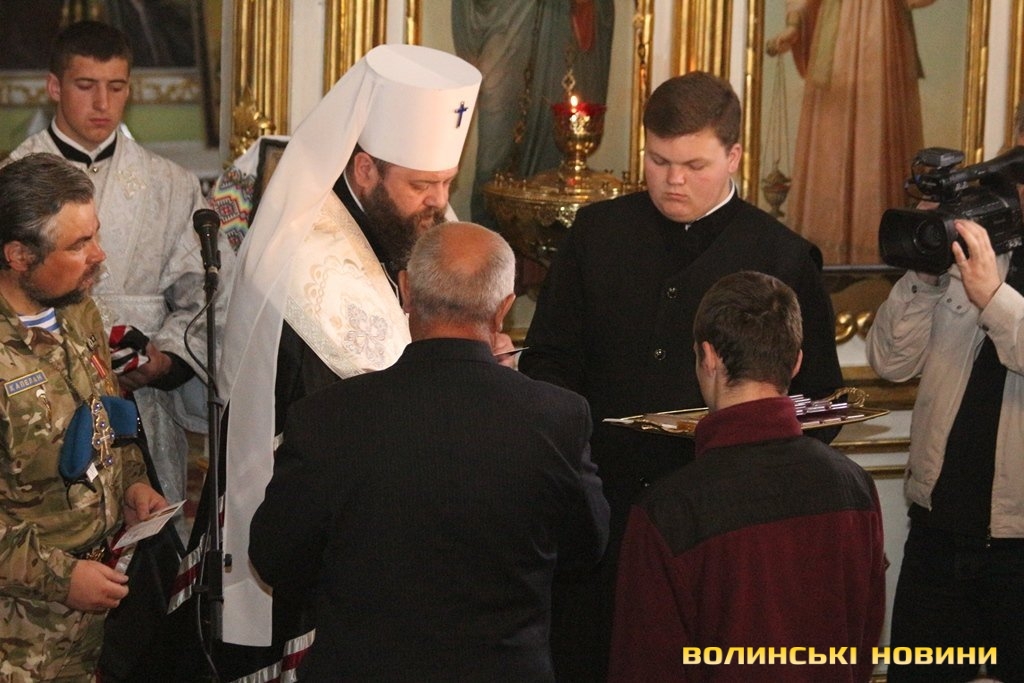 Відзнаки «За жертовність і любов до України» вручив воїнам, які боронять нашу землю на сході, а також родичам загиблих Героїв АТО митрополит Луцький та Волинський Михаїл.