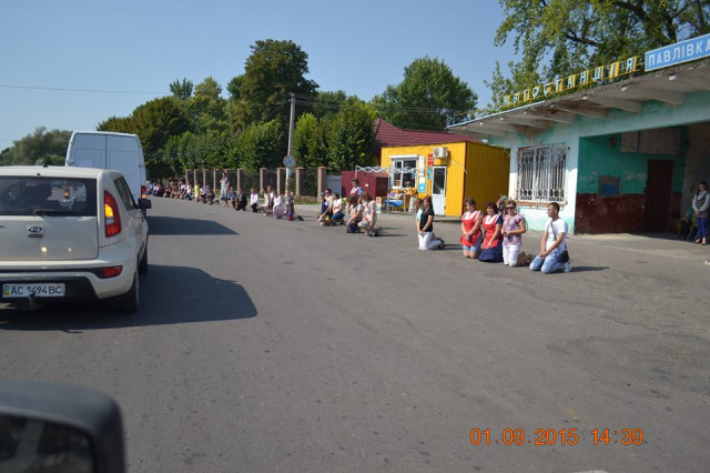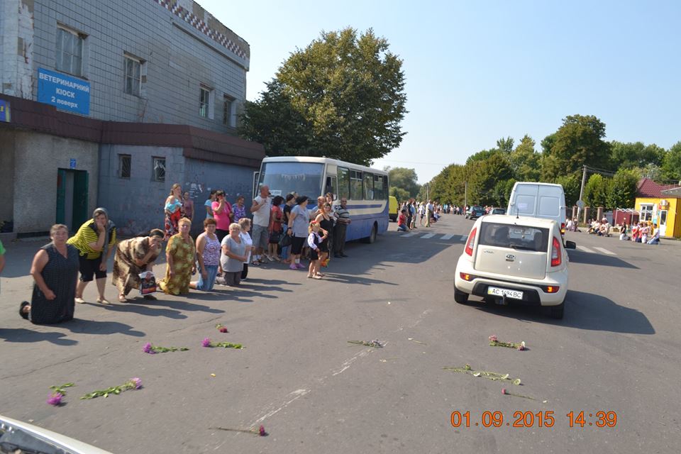Живим ланцюгом на колінах волиняни зустрічали загиблого Героя. ФОТО