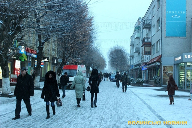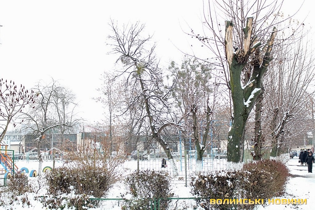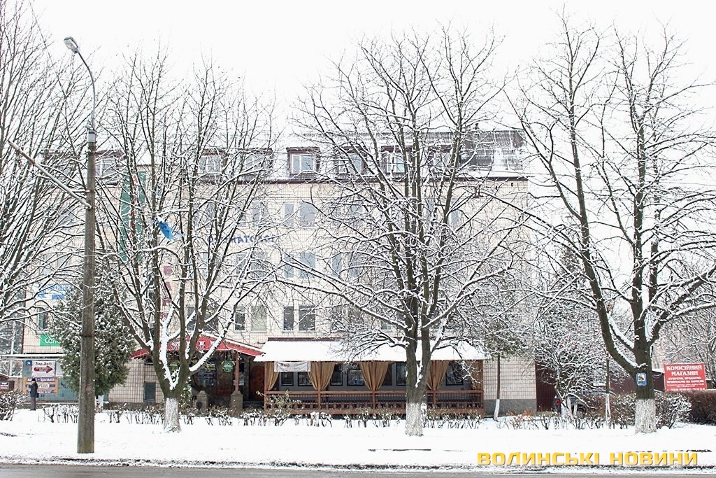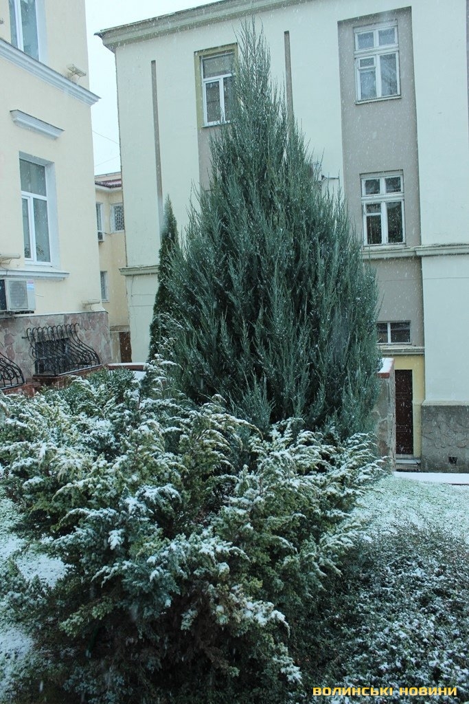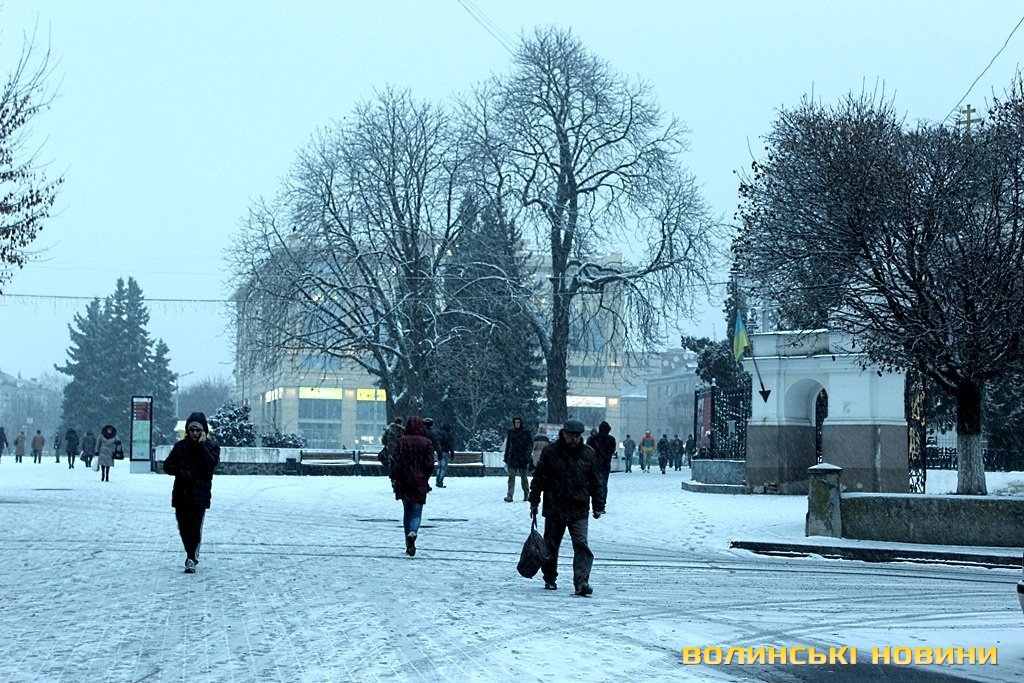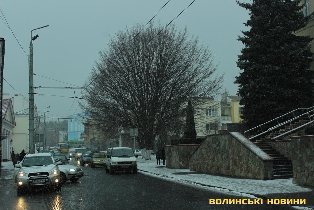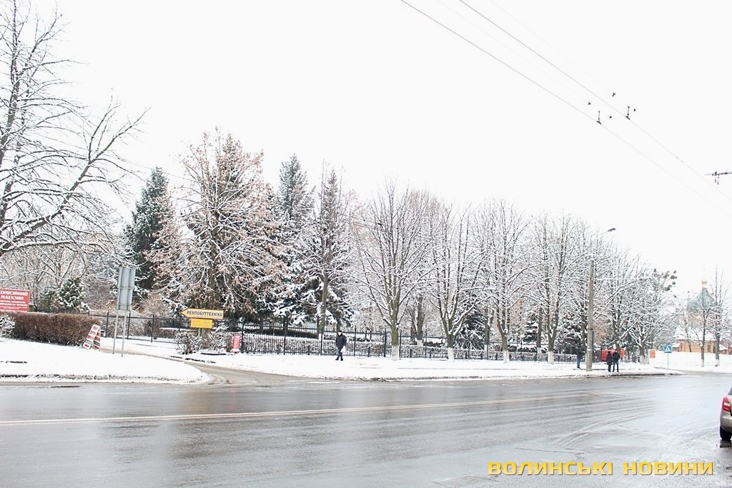 Майже вчасно, згідно із календарем, до Луцька прийшла зима. Сірий асфальт вкрився срібною ковдрою, а на будинках з`явились білі, м`якенькі шапки. Міські дерева одяглись у білі сукні. Сніг, наче коштовна матерія, блищить і переливається під скупими променями зимового сонця.
