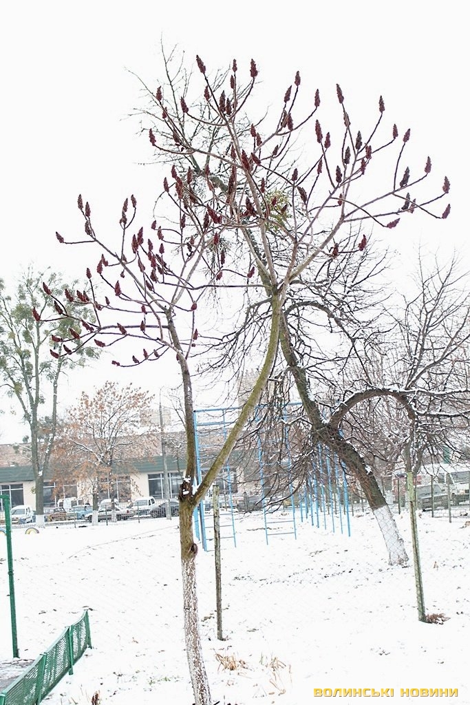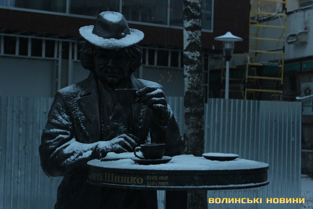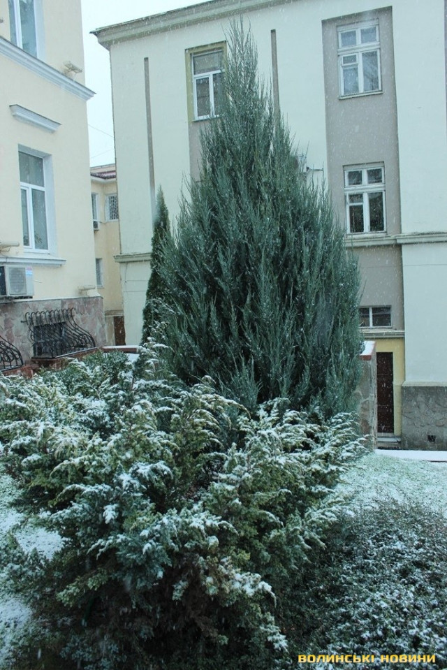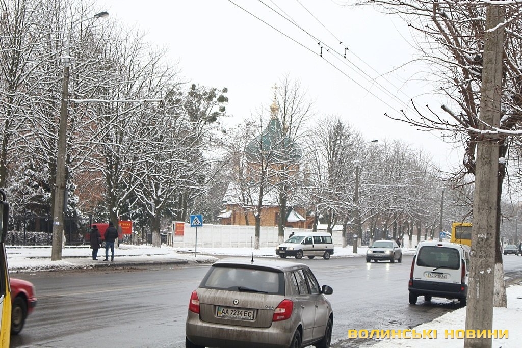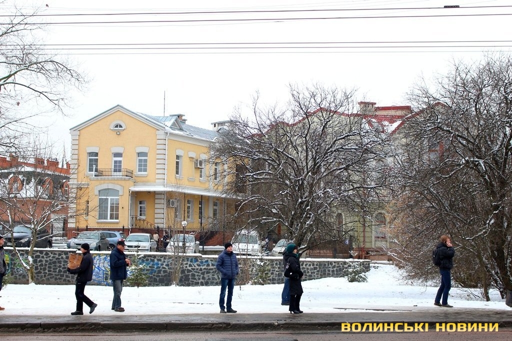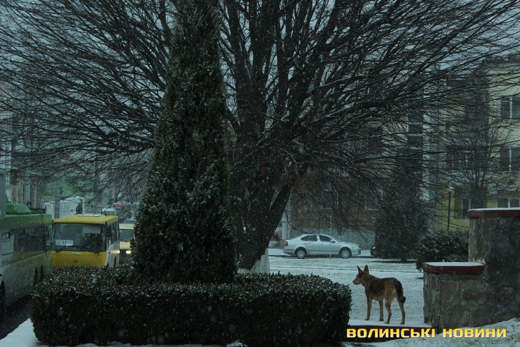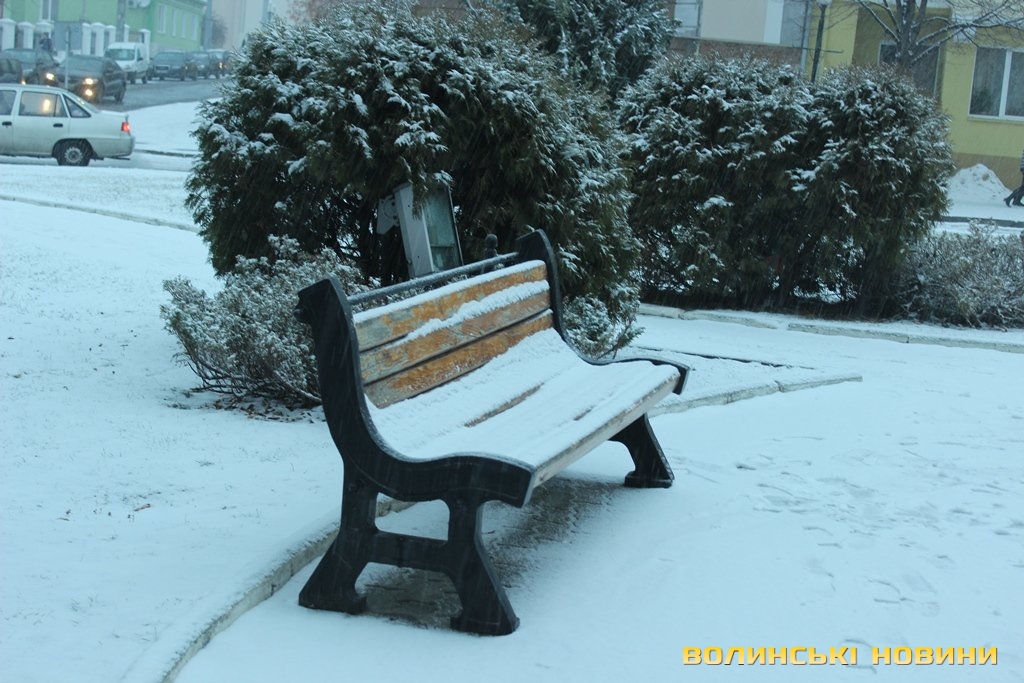 Майже вчасно, згідно із календарем, до Луцька прийшла зима. Сірий асфальт вкрився срібною ковдрою, а на будинках з`явились білі, м`якенькі шапки. Міські дерева одяглись у білі сукні. Сніг, наче коштовна матерія, блищить і переливається під скупими променями зимового сонця.