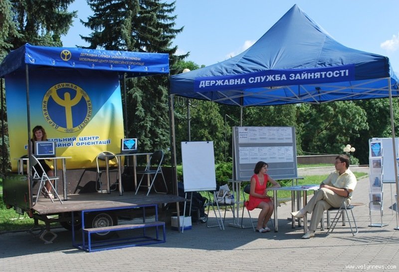 Поки біля національного університету тупцювали абітурієнти та їхні батьки в надії встигнути подати документи, навпроти головного корпусу розташувались працівники Луцького центру зайнятості.