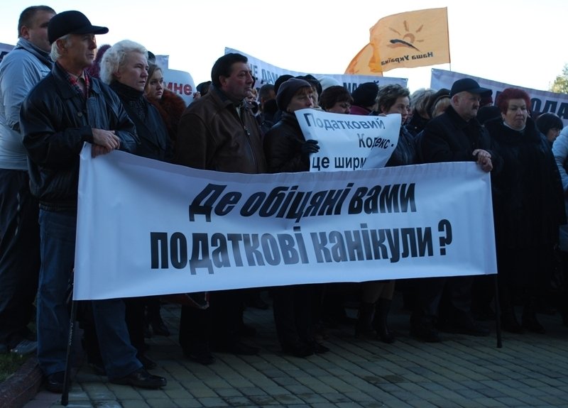 Підприємці протестують проти прийняття положень нової редакції податкового кодексу, розгляд якого запланований у Верховній Раді 4 листопада. Зокрема мітингуючих не влаштовує збільшення податкових зборів та зміни умов систем оподаткування.