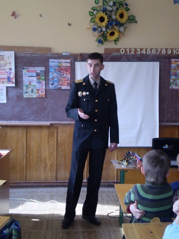 Луцькі першокласники дізнавалися, як поводитися з вогнем, на водоймах та в інших небезпечних для життя ситуаціях - виховну годину у луцькій ЗОШ №25 І-ІІІ ступенів провели рятувальники на чолі з чемпіоном світу з пожежного спорту, волинянином Юрієм Сафатюком.