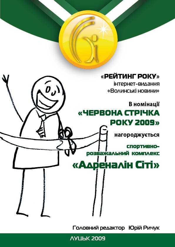З результатом в 47,06% голосів читачів та 7 голосами експертів рейтингу перемогу здобув спортивно-розважальний комплекс «Адреналін сіті». Його відкрили у Луцьку 8 серпня 2009 року. Центр пропонує поїздити на картингу, пограти у футбол, теніс, пейнтбол, лазербол, порибалити на спеціально облаштованому ставку та інші розваги.