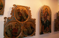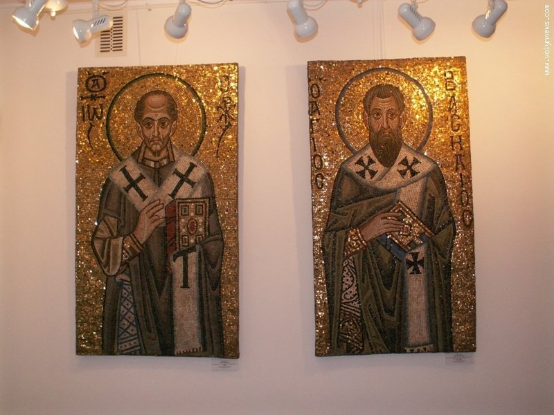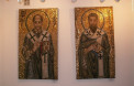 Серед представлених експонатів є копії мозаїчні – триптиха «Моління», зображення Іоана Златоуста та Василія Великого з композиції «Святительський чин», а також фрескових зображень постаті мученика Нестора, фрагментів орнаментів «арабеска» і «пальметка».