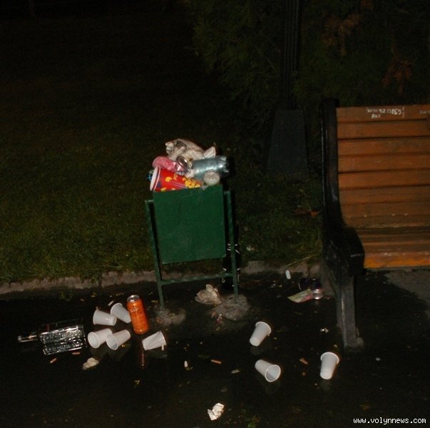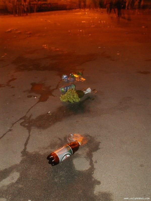 Опісля відкриваються ширми свята – купи сміття по всьому парку. Іще півгодини молодь шукала згублені речі і в смітниках, і поза ними. У парку довго гуляти не дозволили. Як пояснили міліціонери – «чистка території».