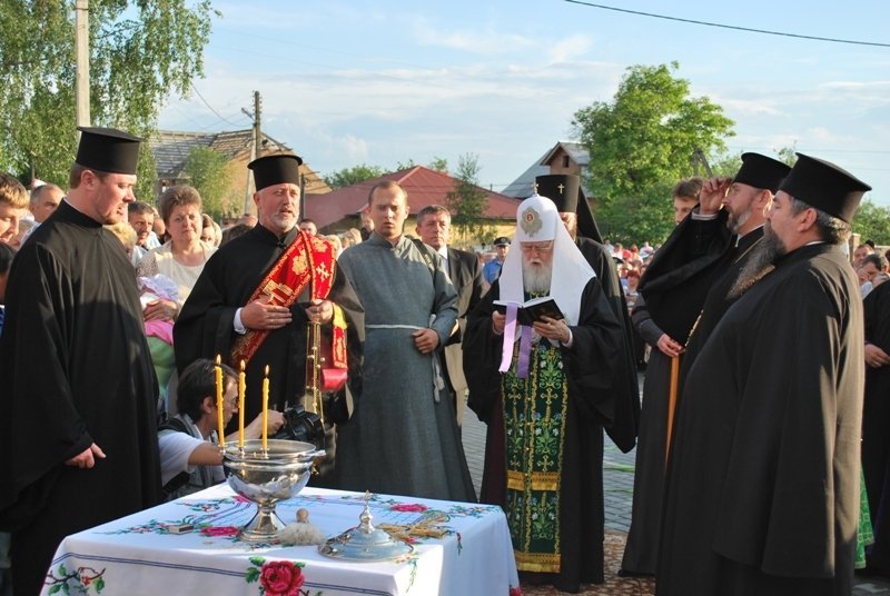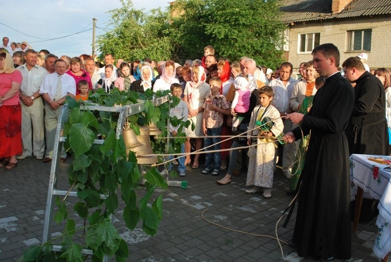 Після освячення дзвонів Філарет огляну храм, а потім разом з вірянами і керівництвом області рушив до площі біля сільського будинку культури. Тут Філарета зустрічали селяни, які у літніх кафе справляли Трійцю та святкували день села, який припадає на 23 травня.