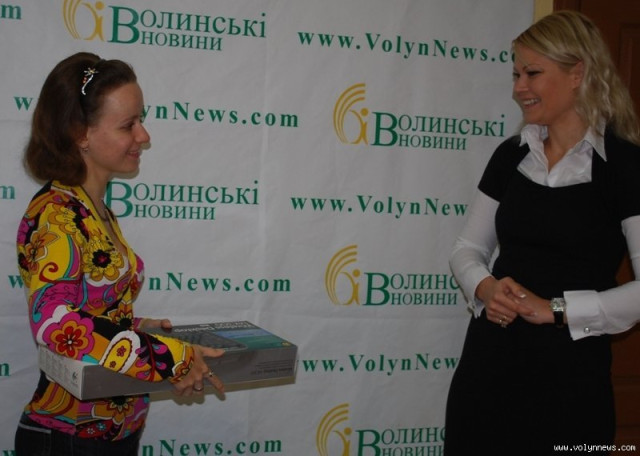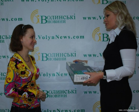 Голова Волинської обласної організації Європейської партії України Олена Голєва авторові найкращого питання, яке було поставлене їй 23 вересня під час чату на «ВН», вручила приз.